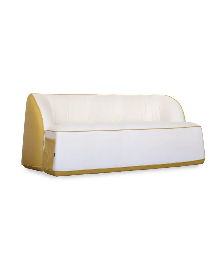 Modern Lounge Foam Outdoor Sofa In Yellow Leather And White Fabric