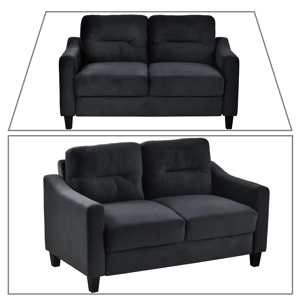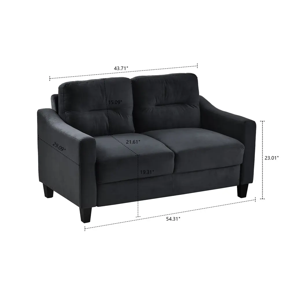 Modern Minimalist Velvet Upholstered Sofa With Plastic Legs - 54.33''w X 29.13''d X 33.03''h - Black