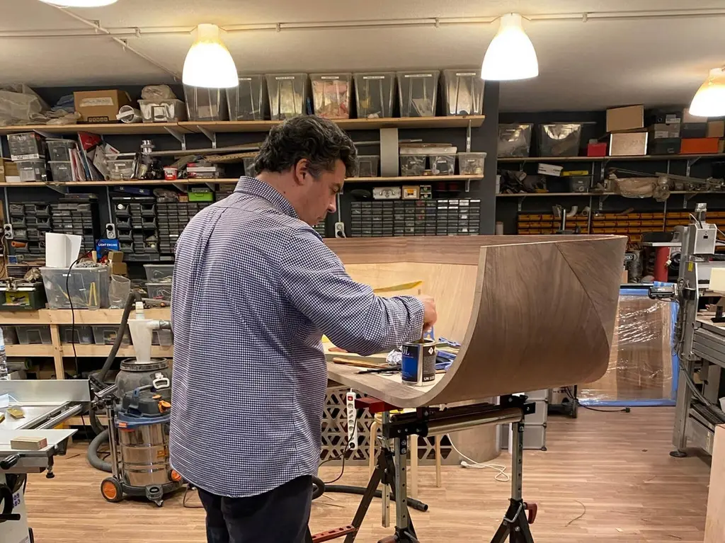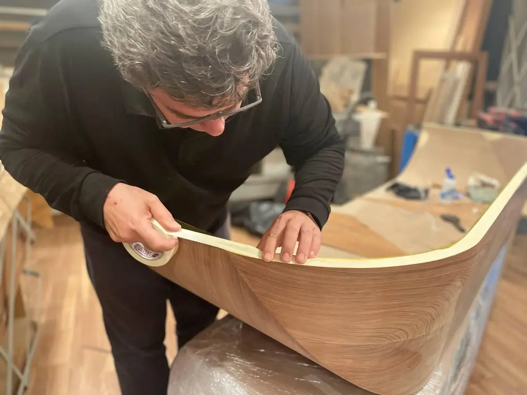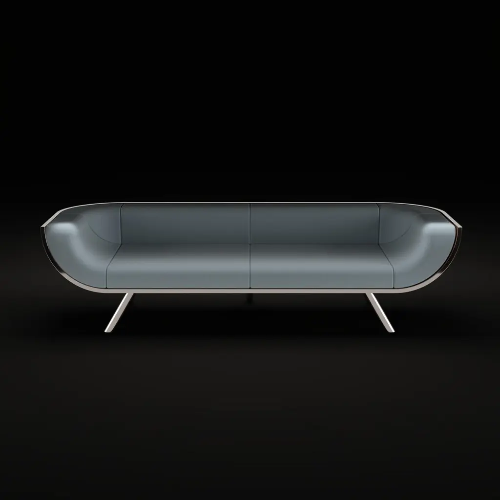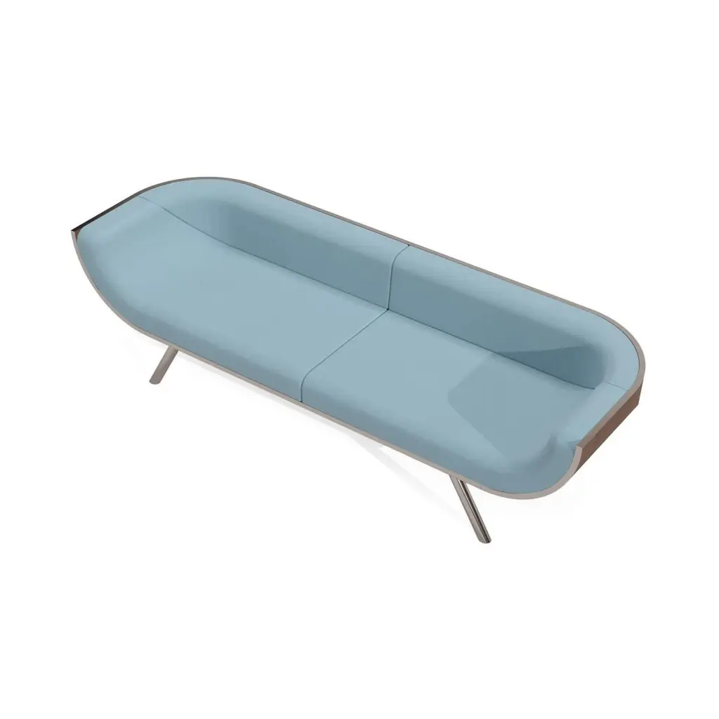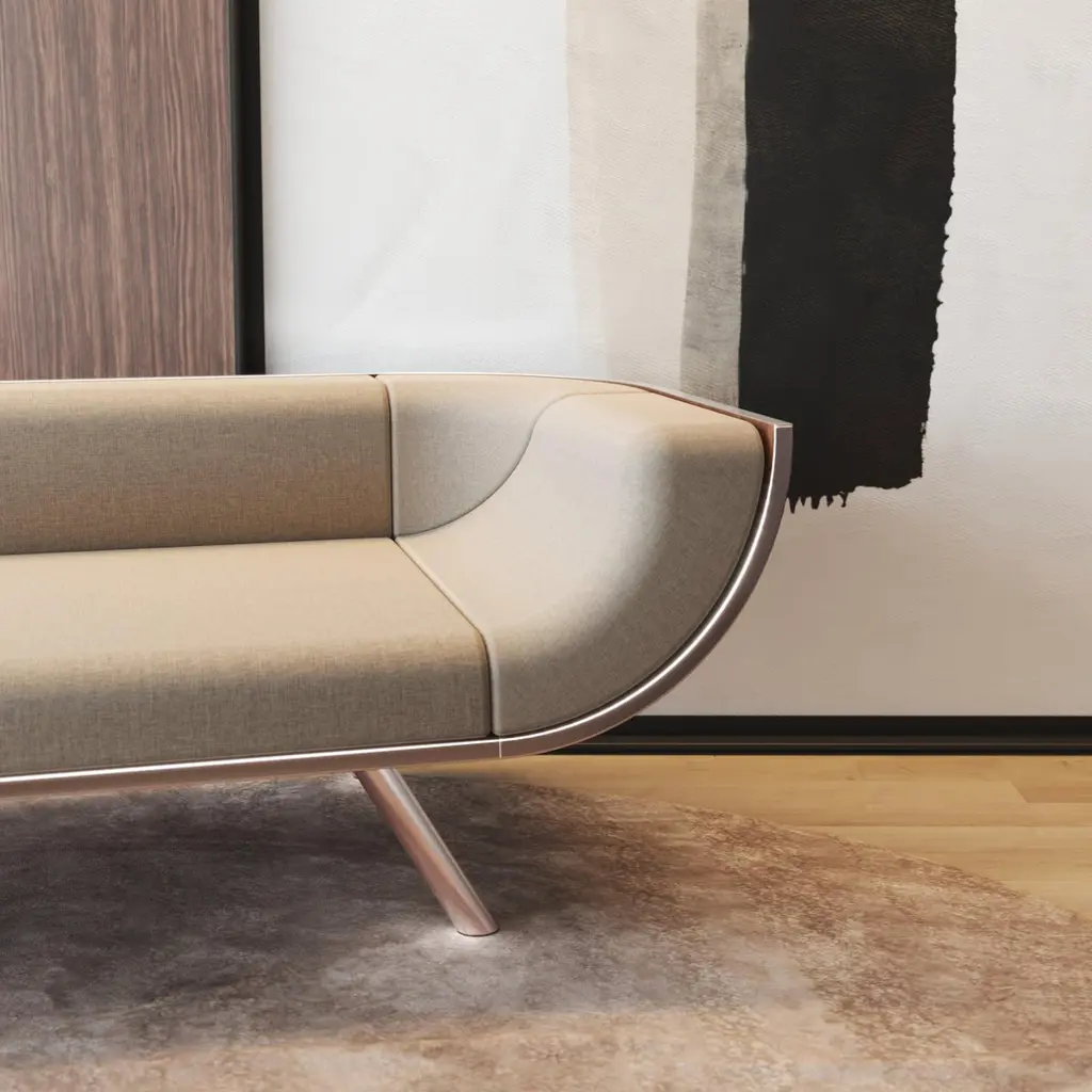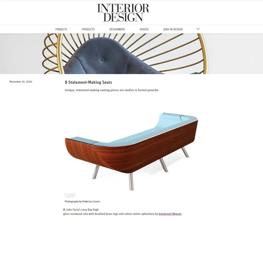 The curved Lazy Day Three-Seat Sofa is part of a seating collection that includes armchairs and sofas for two people. This piece is entirely made in Portugal and artisanally by the author. Its manufacturing process is time-consuming because, among other operations, it has several layers of different materials hidden inside the curved wooden back that provide resistance and shape its round form without the use of machinery. After the final shape is ready, the curved wooden back is mastercrafted with carefully selected walnut with natural patterns. The author himself chooses the wood veneer, and bookmatches them to achieve the best result in the piece. The final finish on the back is a high-gloss varnish to enhance the wood's natural beauty. The sleek legs are made of thick stainless steel tubes, with a handmade brushed finish. A small piece of brushed stainless steel ends the piece on the edge of the wooden back. We can also manufacture this sofa in customised options:Legs: Lacquered thick steel with gold, copper, or silver finish. Brass, copper or stainless steel, with a handmade polished or brushed finish.The polished finish takes longer to manufacture than the brushed finish because the polishing operation is time-consuming and requires several steps for surface preparation. Wooden back: High-gloss, satin, or matte finish; another wood veneer (ironwood, ebony macassar, tineo, black oak) or lacquered wood in any RAL colour.Upholstery: Cotton velvet fabric in different colours. The cushions are filled with soft, comfortable foam. Custom fabrics must be analysed by the author (the client must send us a COM reference or a sample).Dimensions: Each piece is handmade by order, so we can also manufacture the armchair with a 45 cm (17.7 inches) seat height. This piece is assembled and delivered in a wooden box wrapped in bubble wrap. Please let me know if you have any other questions about the piece. You can try this piece in your space using Augmented Reality on your mobile phone (it's available on our website: Lazy Day Collection).The collection, including this piece, recently won a "Silver A Design Award" in the "Furniture, Decorative Items, and Homeware Design" category.Labour of love from Portugal.At Emotional Objects, we don't follow trends or fashion. Instead, we create distinct and timeless objects with solid ideas and concepts. Every Emotional Object has a meaningful story behind it. Made to last for generations, we proudly see our objects as future furniture classics that will stand the test of time.Working in Portugal with the best artisans, Joao Faria's work is difficult to distinguish between functional and fine art. He uses the finest materials and techniques, but most importantly, he only makes pieces he would want for himself.Art Furniture, Unique, Tailored, Emotional, Truly Yours.