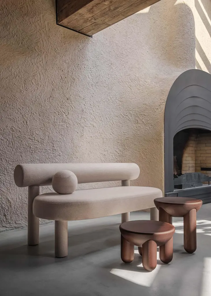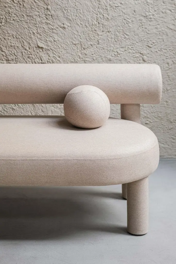 Modern sofa Gropius CS1 by NOOMFully Upholstered Dimensions:Height: 71 cm Width: 150 cmDepth: 70 cmSeat height: 44 cmModel shown in picture : - Fabric : Wool - Color - Calico-29New NOOM furniture collection is dedicated to the 100th anniversary of the founding of the Bauhaus School in Germany. Ideas of functionalism and conciseness, the combination of craft and art, buildings and objects formed by a composition of simple geometric shapes, are still relevant. NOOM furniture is a tribute to the great thinkers who formed the modernist principles and brought them to life. The designer has “gathered” the shape of this chair from balls and cylinders. A round pillow appeal to interact: to pump, to play, to bubble.NOOM is a young, fast-growing design company from Ukraine that produces furniture, lighting, decor, and home accessories. They create sculptural and eye-catching design pieces that elevate any space, whether it is residential or commercial interior. Balancing between expression and function, NOOM is a place where design meets art.