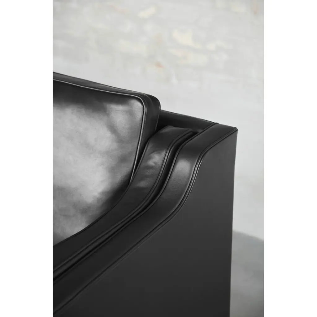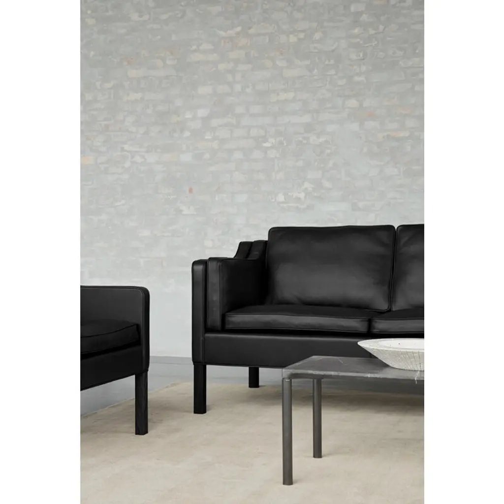 Børge Mogensen designed this 3-seater sofa originally for his own home in 1962. This Mogensen 2213 sofa has been upholstered in black, vegetable-tanned aniline leather with a breathable, open-pored texture. Fredericia’s Select Collection consists of sofas and armchairs characterized by simple but noble shapes and luxurious materials. Besides private residencies, they are seen in embassies, minister’s cabinets and upscale hotels around the world. Mogensen found the inspiration for the collection from Porter’s chairs and sofas designed by Kaare Klint in the 1920s. The whole range is crafted and upholstered by hand at Fredericia’s own factory in Denmark.