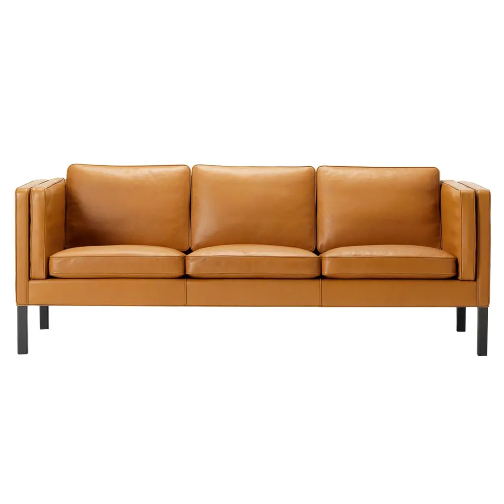 Given the clarity and vision of his restrained aesthetic, Danish design giant Børge Mogensen's 2333 Sofa from his namesake series personifies his fondness for crisply vertical and horizontal lines. With geometric squared-off proportions, even the inner side cushions sit upright and parallel to the armrests. His signature seating comes in a range of leather and fabric options, including velvet, adding a tactile dimension to the concept and complemented by solid-oak legs in a lacquer, stained or oiled finish.