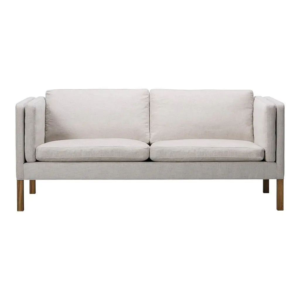 The 2.5 seater sofa was designed by Borge Mogensen's son, architect Peter Mogensen, as a completion of his father's last furniture series. The extended width of the cushions softens the formality of the design in a respectfully unpredictable way.