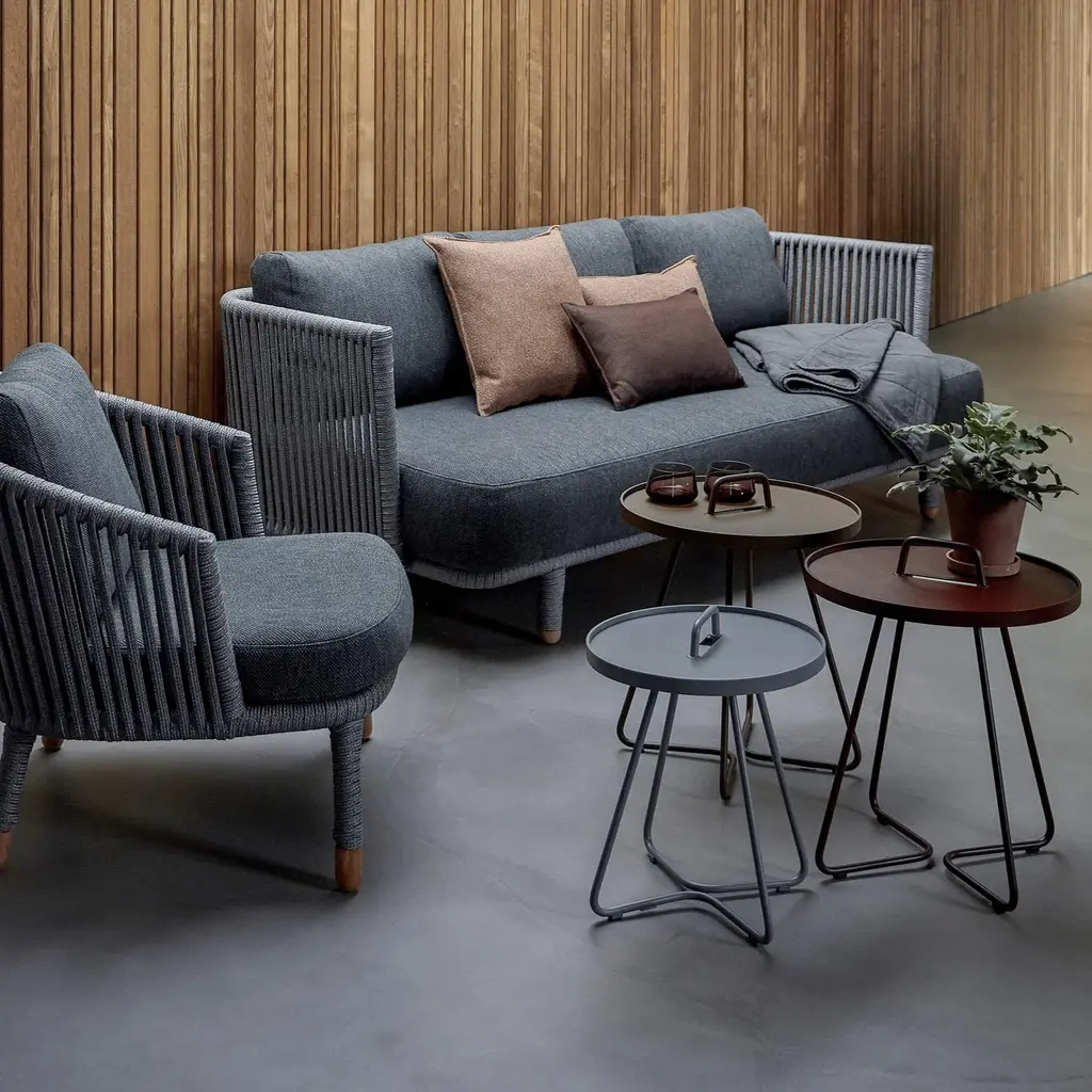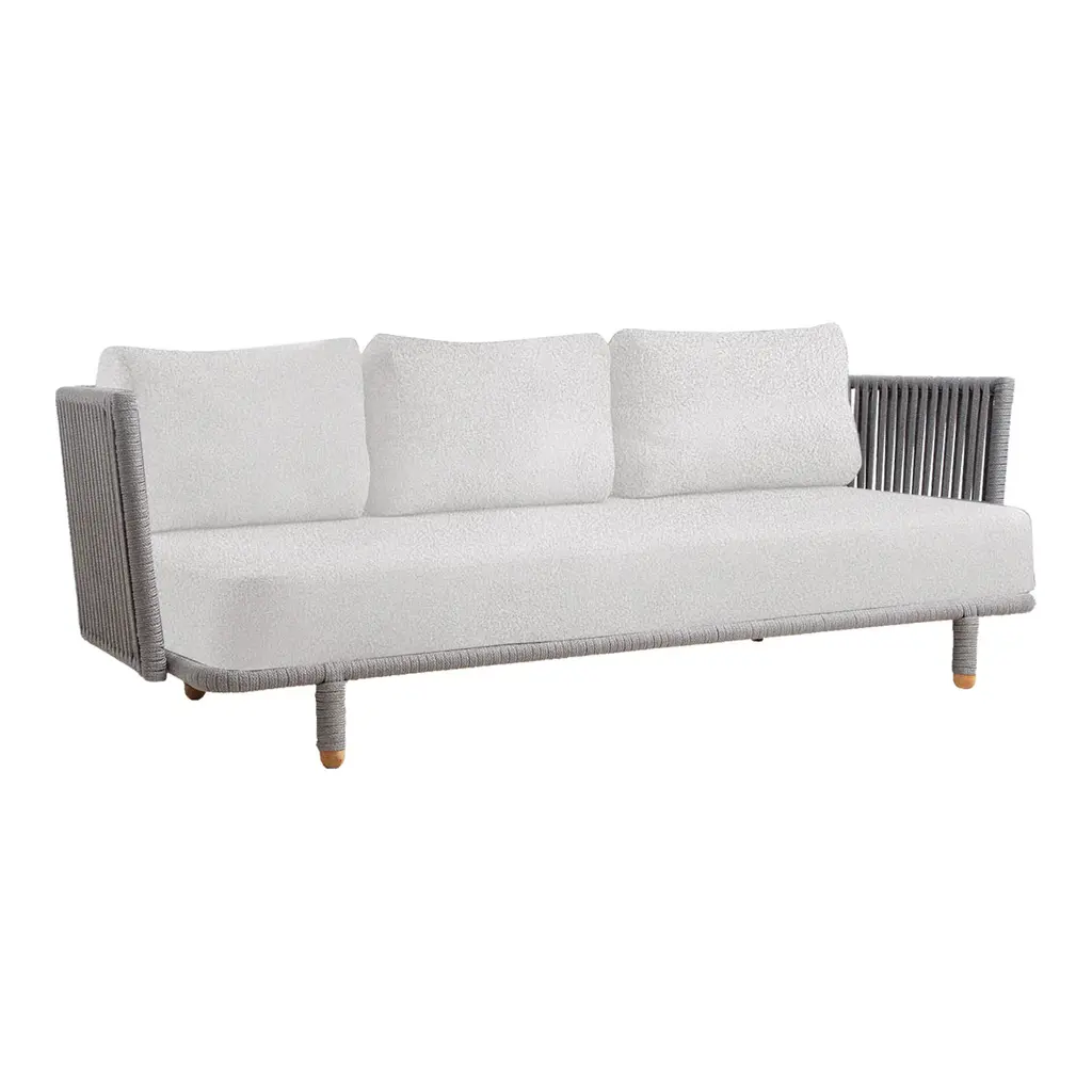 The Moments 3-Seater Sofa from Cane-line redefines outdoor seating with its contemporary ribbed design and lightweight appearance. Wrapped in soft rope around a sleek rectangular frame, it offers a distinctive textured look that complements modern interiors. Plush rectangular cushions deliver exceptional comfort and support, making it ideal for both spacious and cozy living areas. This sofa effortlessly blends style and function, enhancing any setting with its refined, airy elegance. Highlights