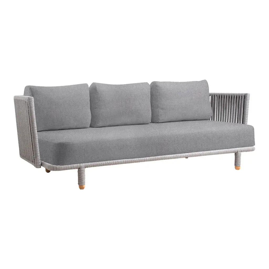 The Moments 3-Seater Sofa from Cane-line redefines outdoor seating with its contemporary ribbed design and lightweight appearance. Wrapped in soft rope around a sleek rectangular frame, it offers a distinctive textured look that complements modern interiors. Plush rectangular cushions deliver exceptional comfort and support, making it ideal for both spacious and cozy living areas. This sofa effortlessly blends style and function, enhancing any setting with its refined, airy elegance. Highlights