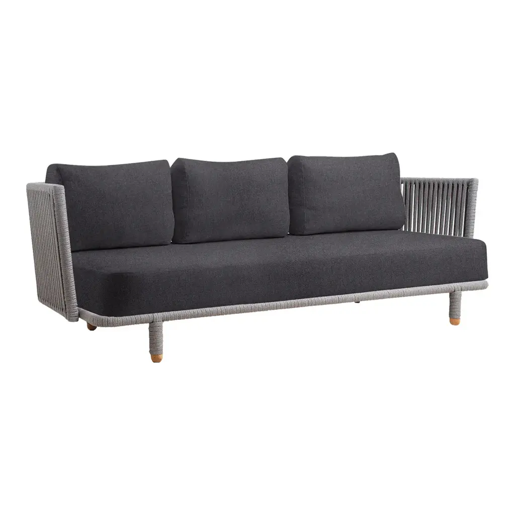 The Moments 3-Seater Sofa from Cane-line redefines outdoor seating with its contemporary ribbed design and lightweight appearance. Wrapped in soft rope around a sleek rectangular frame, it offers a distinctive textured look that complements modern interiors. Plush rectangular cushions deliver exceptional comfort and support, making it ideal for both spacious and cozy living areas. This sofa effortlessly blends style and function, enhancing any setting with its refined, airy elegance. Highlights