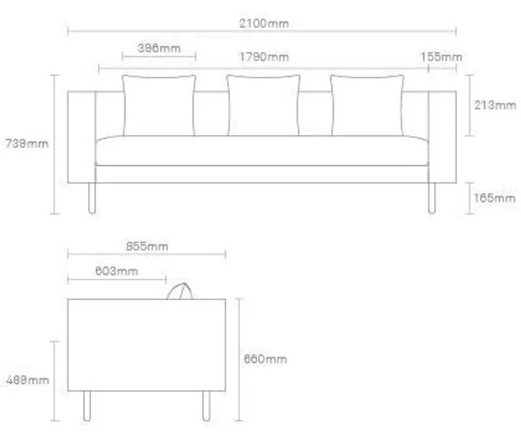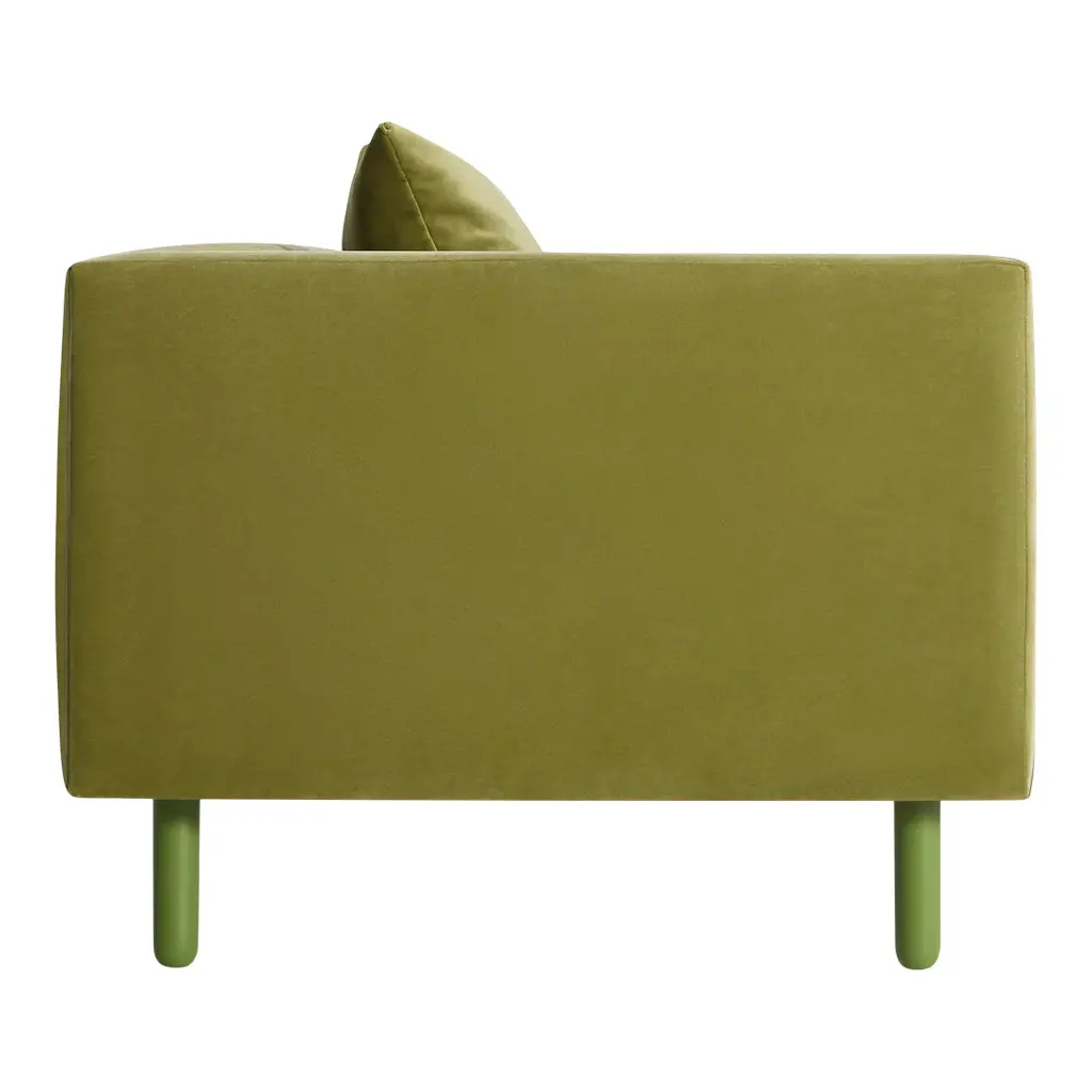 Streamline simplicity. One cushion, one color, one throw pillow – all dreamy.Hart sand and spitzer grey features walnut legs. All other sofas have solid wood legs painted to match the upholstery.