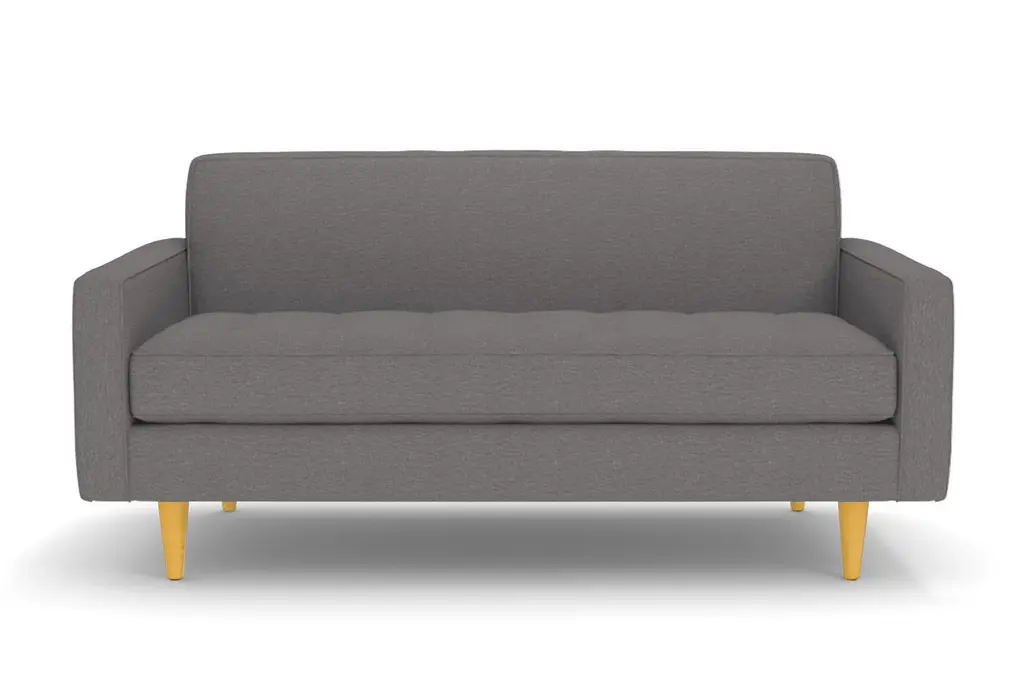 The Monroe Apartment Size Sofa From Kyle Schuneman has a definite Mad Men-esque appeal to it, so much so that we can see it prominently taking center stage in Don Draper's office. It's the perfect silhouette for those who are drawn to the mid-century style and the perfect loveseat size - 56"w x 34"d x 31"h - for apartment living or homes with a smaller living room. It also comes in the larger 68"w x 34"d x 31"h apartment size. This stylish sofa not only comes in a range of colors, it comes in a range of awesome, unexpected colors. With hues such as pink lemonade, amethyst or green apple, we bring new meaning to the phrase, make a statement!