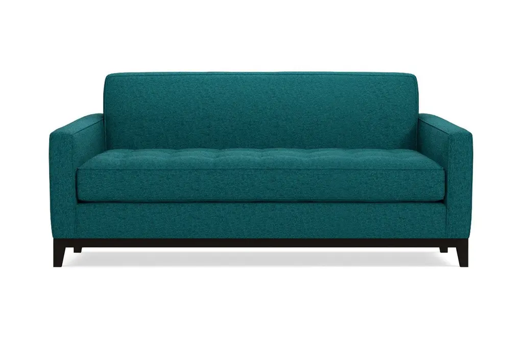 The Monroe Drive Collection is a modern update of our show-stopping Monroe Collection. The same eye-catching Mid Century Modern design details that defined the Monroe are still on display, but now with the addition of a stunning, solid wood base. The sophisticated button-tufted cushions and sleek tight back make the Monroe Drive look like it came straight from a classic Hollywood film set. The contemporary base creates a handsome, formal profile that allows the Monroe Drive to feel right at home in a variety of different decor styles. Available in your custom choice of our kid friendly and pet friendly fabrics, the Monroe Drive is perfect for your family home, for your sophisticated apartment, or for your chic small space loft.