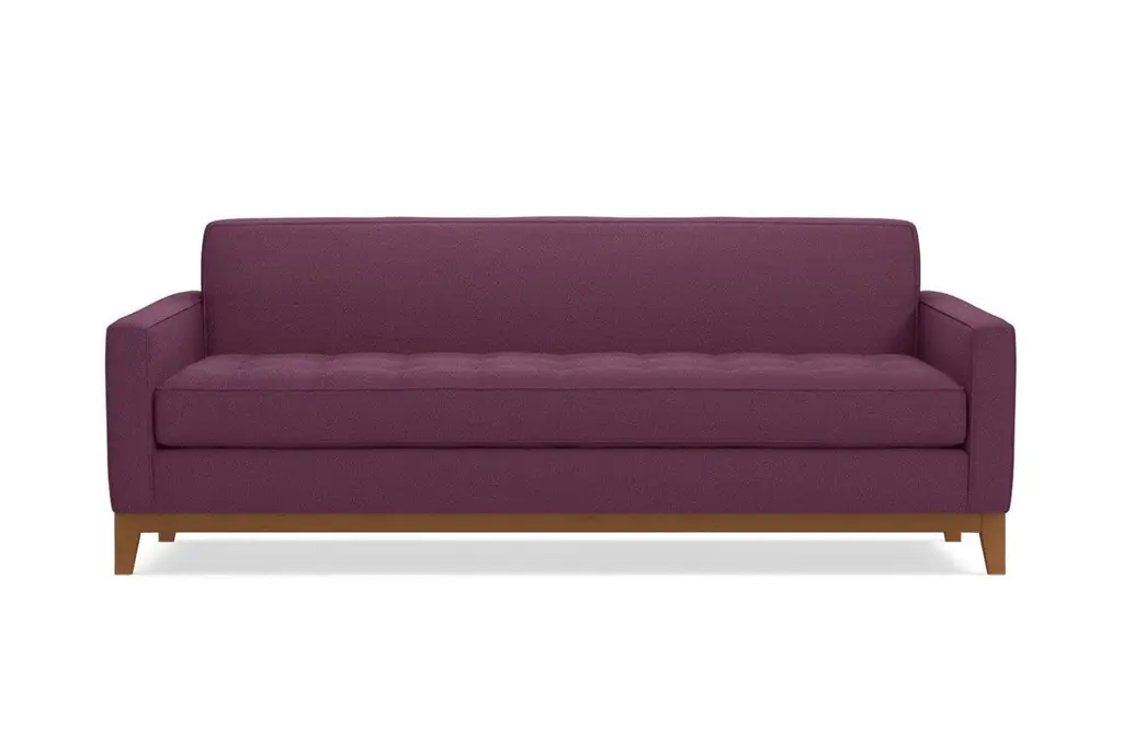 The Monroe Drive Collection is a modern update of our show-stopping Monroe Collection. The same eye-catching Mid Century Modern design details that defined the Monroe are still on display, but now with the addition of a stunning, solid wood base. The sophisticated button-tufted cushions and sleek tight back make the Monroe Drive look like it came straight from a classic Hollywood film set. The contemporary base creates a handsome, formal profile that allows the Monroe Drive to feel right at home in a variety of different decor styles. Available in your custom choice of our kid friendly and pet friendly fabrics, the Monroe Drive is perfect for your family home, for your sophisticated apartment, or for your chic small space loft.