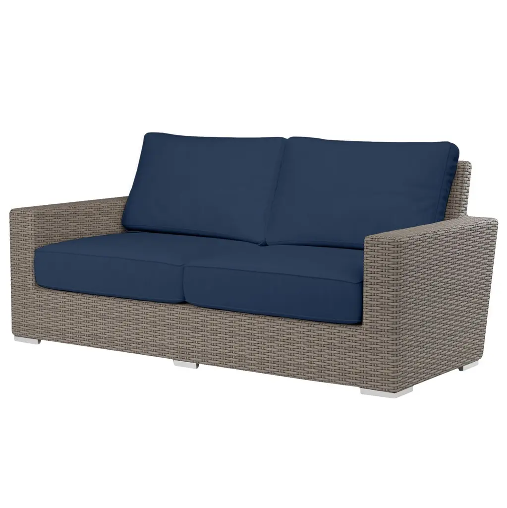 Inspired by the coast, The Montana Sofa offers purely sophisticated outdoor living. Expertly crafted to mimic natural materials with low maintenance, it provides absolute comfort with its generously sized frame and advanced seating support. Featuring a fully welded powder-coated aluminum frame, it incorporates a progressive springing system technology and weather-resistant, high-resiliency foam cushions. The sofa is stocked in premium fabric and includes non-marking plastic glides. With commercial quality construction, custom cushions are available in approximately 4 weeks. Montana coordinates well with other pieces from the collection.