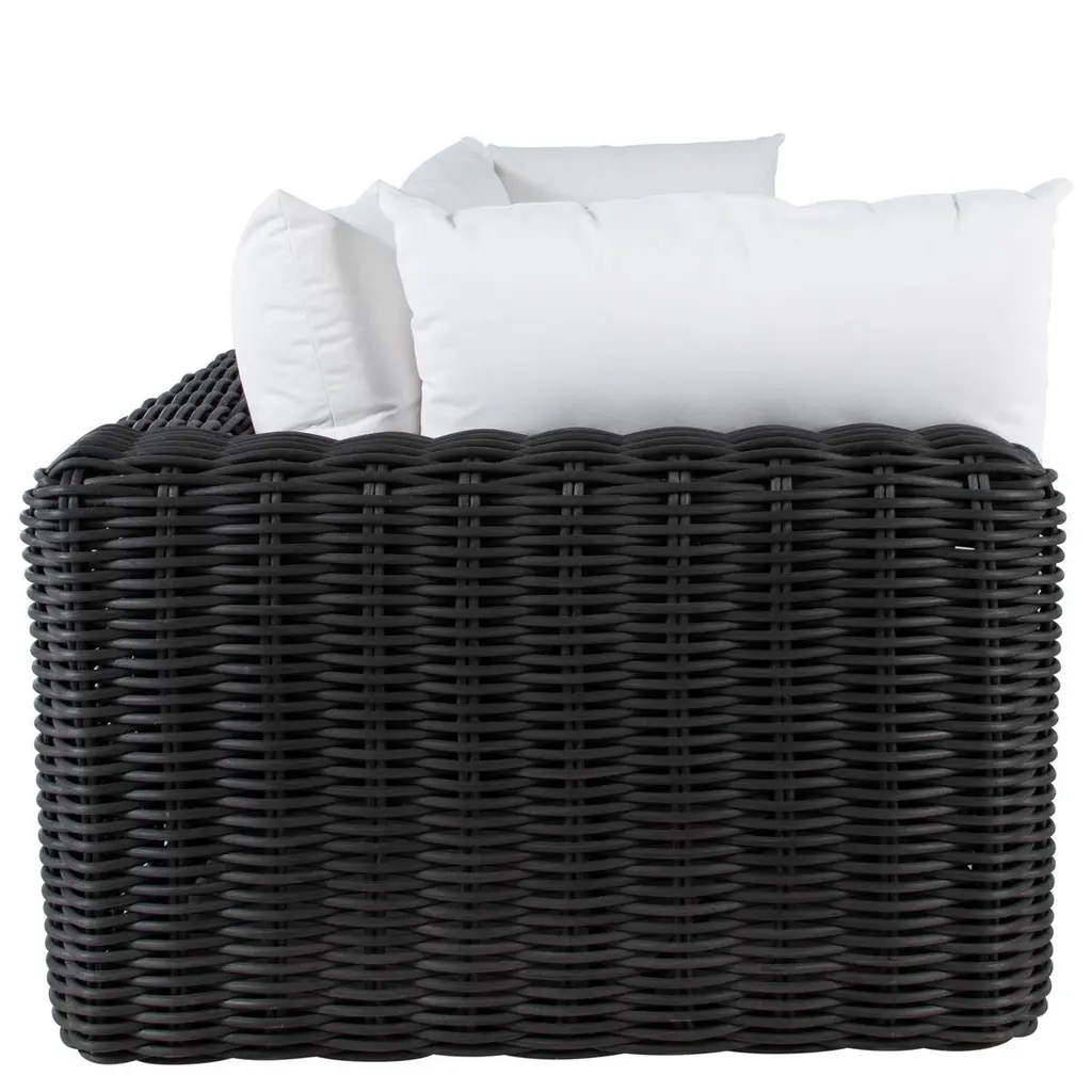 The Montecito Sofa features oversized proportions for the ultimate in luxurious seating. Inspired by the charm of handwoven basketry, the large wicker weave offers a relaxed look and feel to the low, linear profile of this outdoor sofa. Made for years of enjoyment and beauty with highly weather- and UV-resistant materials for a worry-free experience with the look of natural materials.
