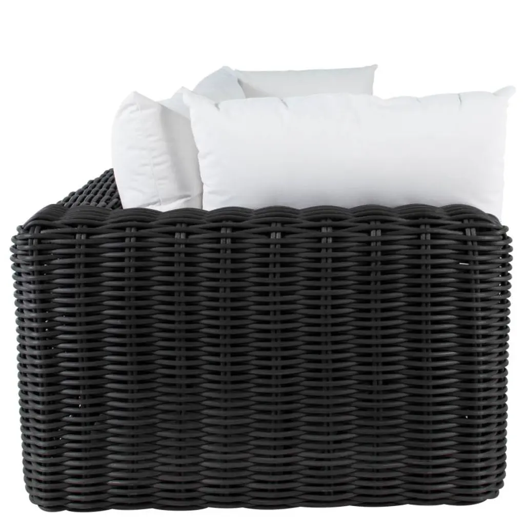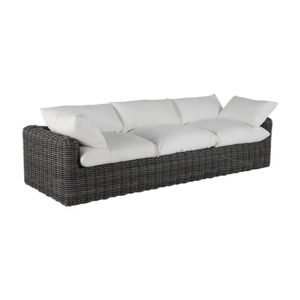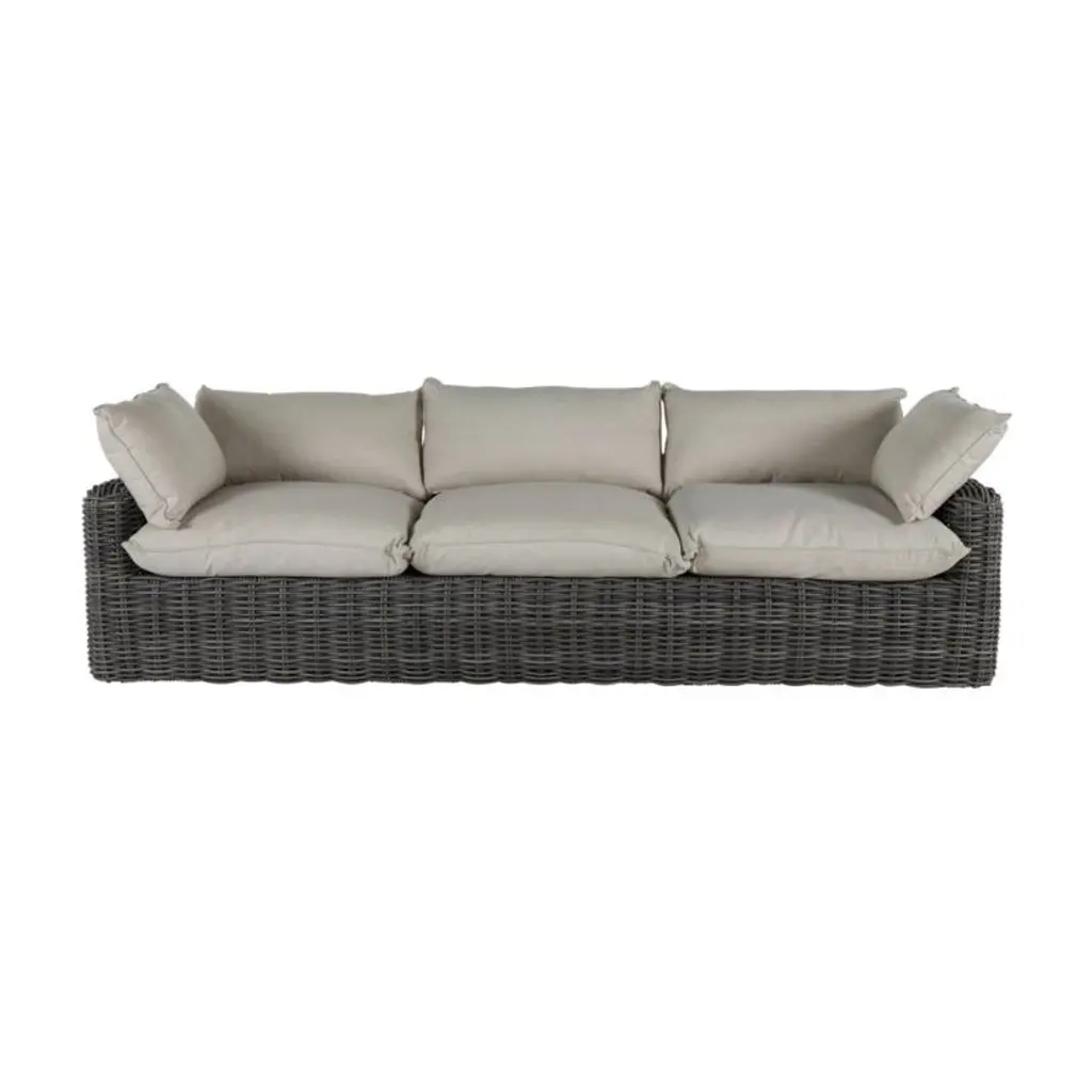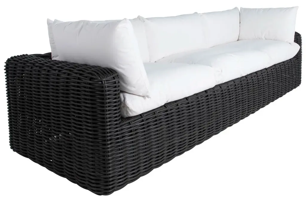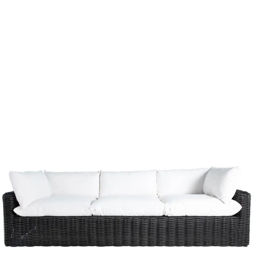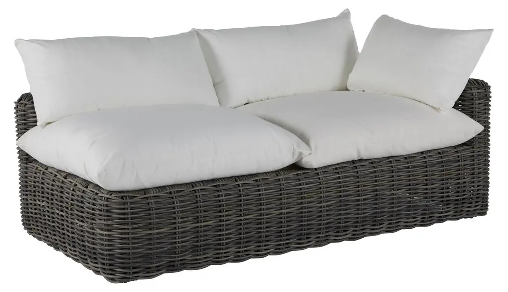 The Montecito Sofa features oversized proportions for the ultimate in luxurious seating. Inspired by the charm of handwoven basketry, the large wicker weave offers a relaxed look and feel to the low, linear profile of this outdoor sofa. Made for years of enjoyment and beauty with highly weather- and UV-resistant N-Dura™ resin wicker for a worry-free experience with the look of natural materials.