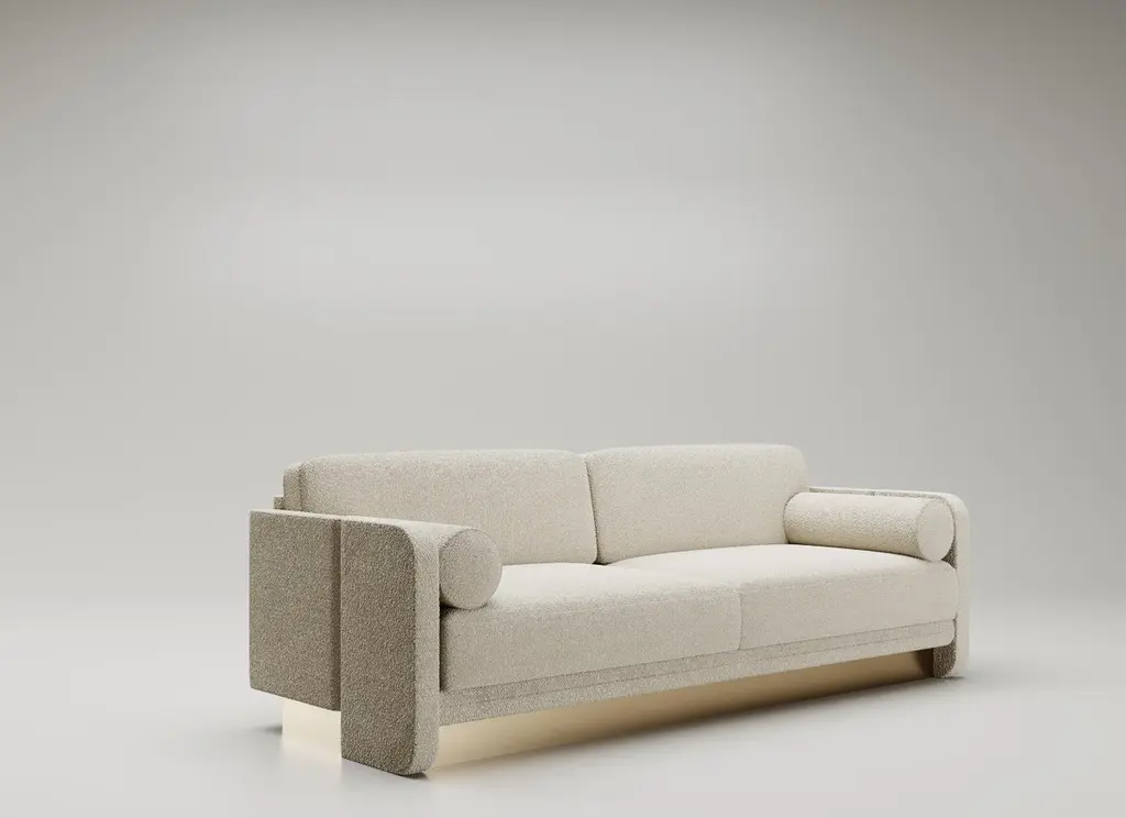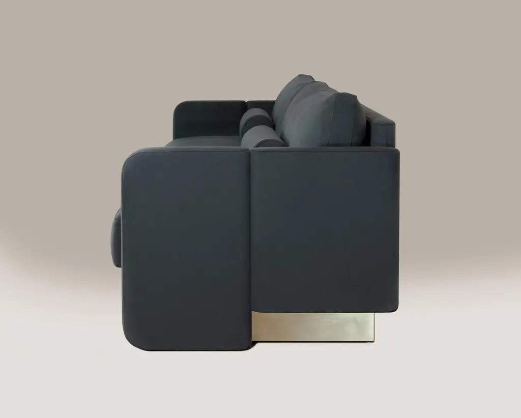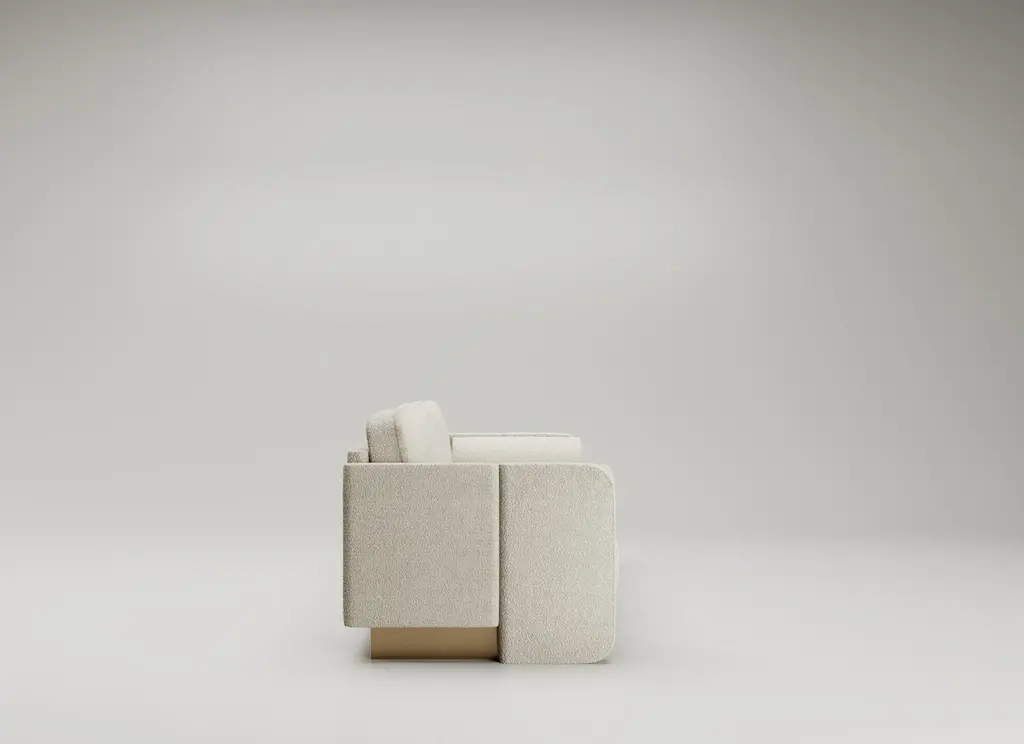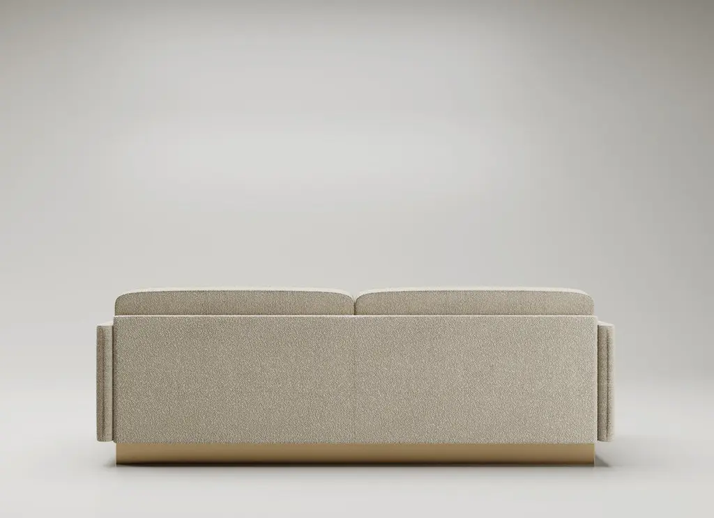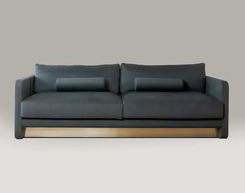 Montenapoleone Sofa by Andrea BoniniLimited EditionDimensions: D 71 x W 220 x H 85 cm.Materials: Loro Piana fabric and Brass.Made in Italy. Limited series, numbered and signed pieces. Custom size or finish on request. Different fabrics available. Please contact us.The aim of the Edition Collection is to launch a collection of sculptural furnitureelements produced in a limited series which can be made exclusively by expert and specialized craftsmen.Each piece is intrinsically connected and portrays elegance through geometry and proportions. Meticulous detail of symmetry, bold and deep lines, virtuous and ample curves, cuts and grafts can be found in every single piece.Each product encloses the complexity of its production process in a pure and virtuous form.They are limited editions, each piece signed and numbered, appreciated as art or as design. They are the result of past experiences yet the keeper of future projects. The purpose of andreabonini edizioni? To tell a story through the use of materials between tangent reality and the world of dreams.Andrea Bonini seizes every detail that strikes his attention with a critical eye.A still image, imprinted in the mind, which becomes an idea through a process of mental elaboration and a fusion of scenarios. The cultural background in which Bonini was born is characterized by the timeless charm of a precious combination of two materials that enhance each other: metal and marble.His is a family of metal artisans for several generations and Bonini was born in a landscape which is the cradle of marble extraction and processing. The deep knowledge of these two fascinating and natural elements leads him to often insert them in his works; he prefers them in their authentic finishes and shades, sometimes raw or with their natural imperfections, typical of this material.Adopted by the city of Milan; here he gains his first success and initiates important collaborations. Bonini listens and follows the artistic trails left by his masters; from Carlo Scarpa to Franco Albini and Christian Liaigre.Andrea Bonini is sensitive and concentrated, with meticulous commitment he follows every phase of his products and his interiors; he is personally active in dealing with the craftsmen and his sharp pencil captures any variation or improvement.During his career he chooses to design for companies with high artisanal criteria; the same intention is reflected in his interior projects, attention to every detail with a sartorial approach recognizable on the international scene. Bonini has successfully completed and is currently working on projects in Italy, China, the United Kingdom and the French Riviera.To date, his studio atelier is located in Milan in via Montenapoleone, core of Italian excellence. It is a small yet refined ambience; a boutique with contemporary taste.Here his pencil gives life to all his projects, elaborated in every detail together with his team, producing a strongly recognisable and prestigious result.