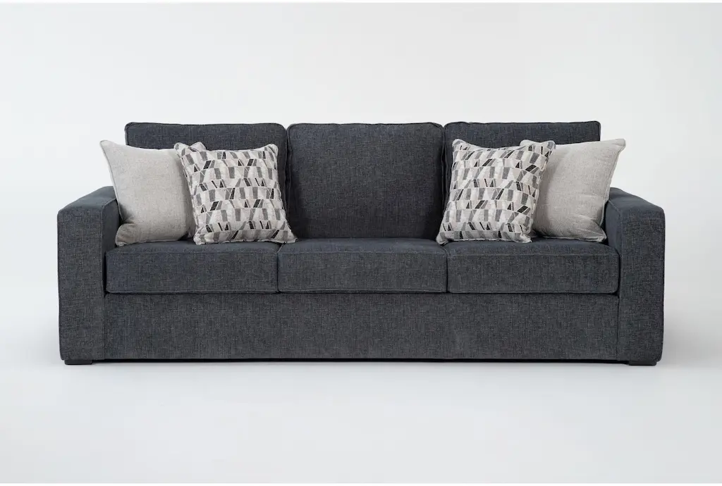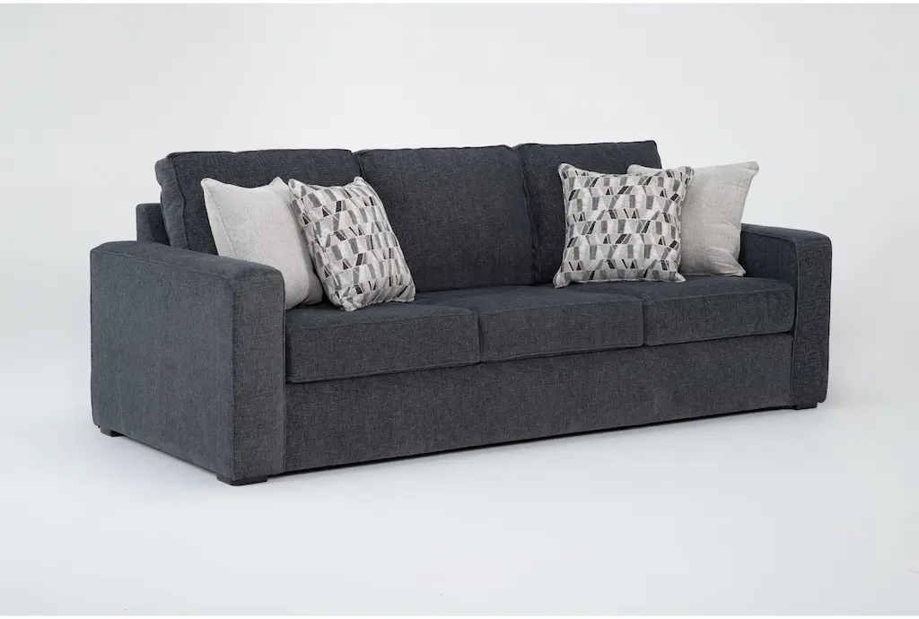 Monterey Twilight Blue Grey Fabric 95" Sofa | Track Arms | Loose Reversible Back