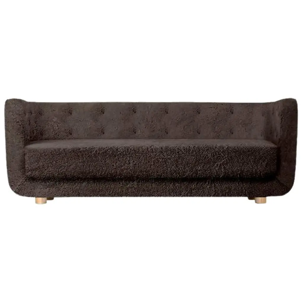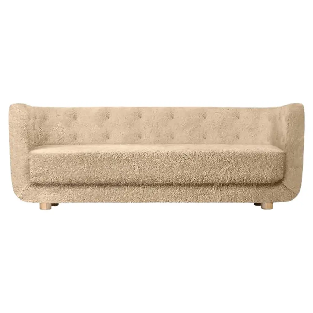 Moonlight sheepskin and natural oak vilhelm sofa by LassenDimensions: W 217 x D 88 x H 80 cm Materials: sheepskin, oak.Vilhelm is a beautiful padded three-seater sofa designed by Flemming Lassen in 1935. A sofa must be able to function in several ways. It should invite calm and contemplation. Create a private space you can hide in and at the same time invite to life and play. It must be able to withstand sitting on the backrest or on the armrests and then it must be able to stand in the middle of the room if you want to.In addition to being aesthetically beautiful and harmonious, the design makes absolute sense in relation to these parameters.By Lassen is a Danish design brand focused on iconic designs created by Mogens and Flemming Lassen, founded by Lassens’ relatives in 2008. Brothers Mogens (1901-1987) and Flemming (1902-1984) Lassen are known as two of Denmark’s greatest architects and designers. Both were renowned pioneers of Danish functionalism and modernist architecture, honoured with numerous prestigious medals and awards. Headed by Mogens Lassen’s grandson Søren Lassen, By Lassen carries on the brothers’ design philosophy by manufacturing their iconic designs as well as products by other designers that complement the Lassen’s functionalist style. The company’s mission is to continue the tradition of timelessness, functionality and quality, and to introduce the Lassen’s design heritage to new generations.