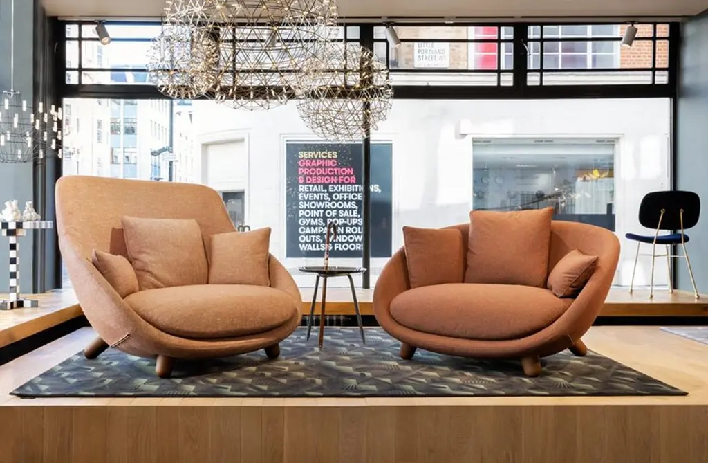 Have you ever fallen in love with a chair or on a sofa? Both experiences are possible, even probable while enjoying a romantic dinner for two in the Love chair or cuddling up with your sweetheart in one of the Love sofas by Marcel Wanders. True love is long-lasting: so too is the Love Sofa's construction, with a steel frame and wood legs that provide firm support. Moulded foam on metal frame with wooden legs.Additional information:Material: Metal, foam, wood, upholsteryUpholstery: Liscio, Nebbia - Cat IIILeg finish: White Wash StainedDimensions: 129 W x 105 D x 77 H cmSeat height: 38 cmAvailable in other leg finish option: Cinnamon StainedAvailable in other upholstery optionsAvailable in other structural options: Highback sofa.