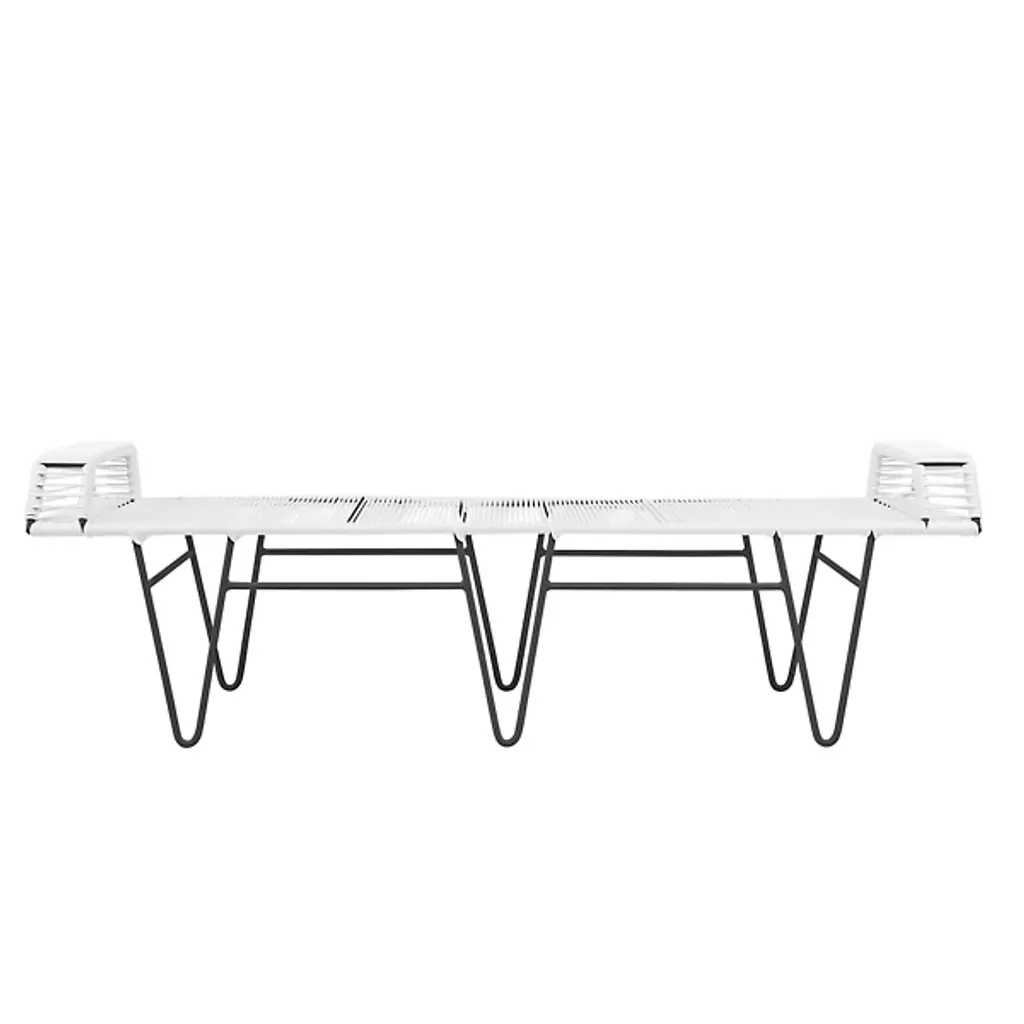 The Nest collection’s linear, clear metal structure lifts the plumpest and softest cushions from the floor. It is a comfy elevated nest for one or more people. For the lovers of fresh, colourful prints Marcel Wanders has developed two signature textiles with a heart of sunshine: ‘One minute’, with its instant splashes of blue skies, and ‘Flower bits’, with a bloom of flowers and butterflies. Since this chair and sofa are all about their cushions, they are also available other prints and colours so that everyone can accessorize their personal nest with the look that most represents them.Additional information:Material: KTL and powdercoated steel frame (suitable for outdoor use)Frame finish: White powdercoated steelDimensions: 177 W x 88 D x 81 H cm.