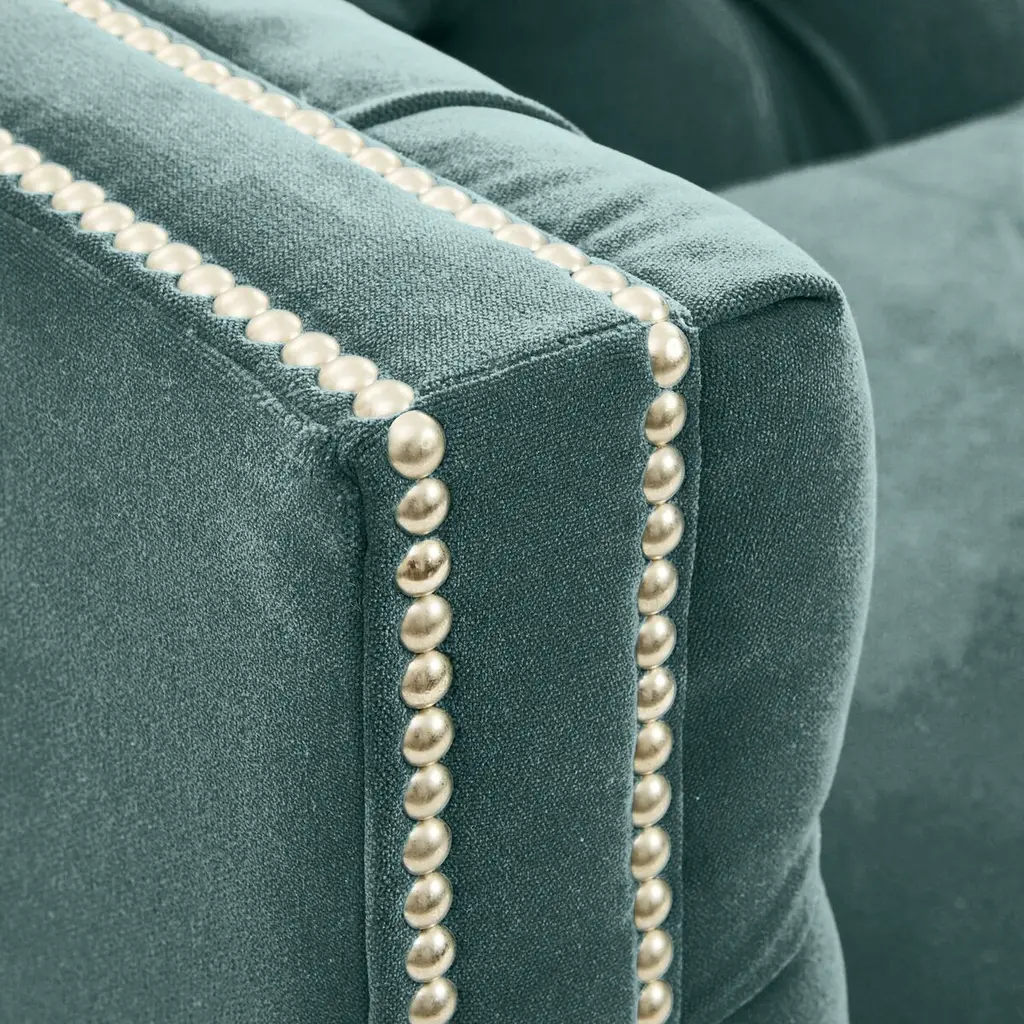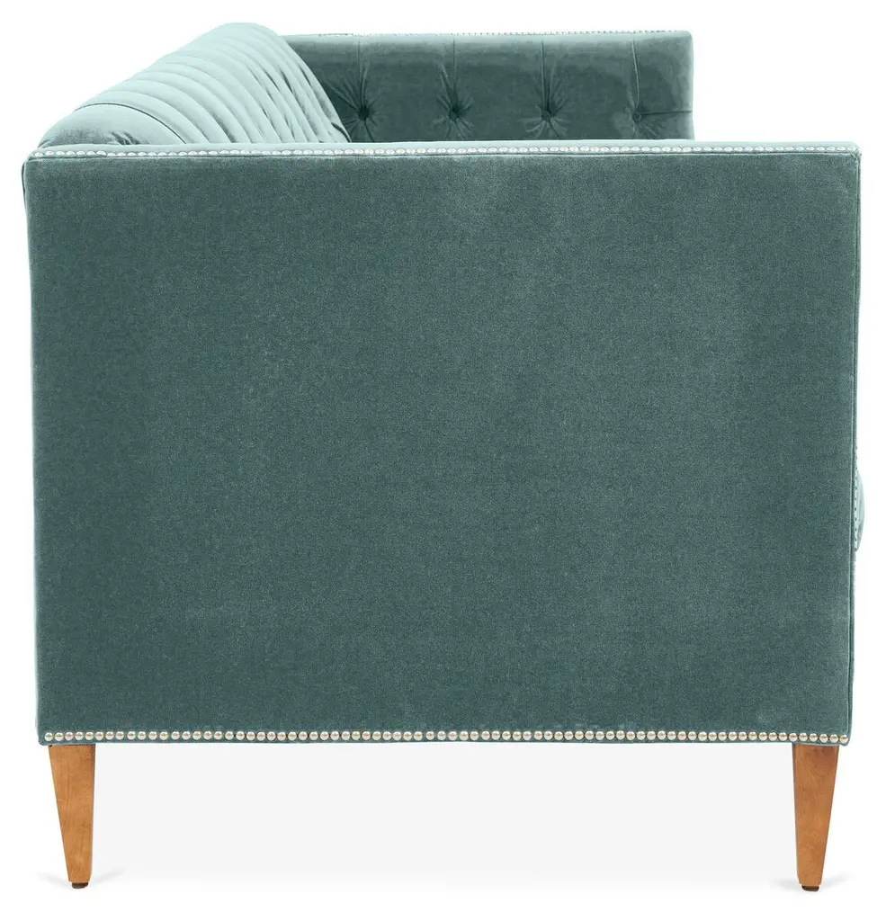 Designed by us and available only at One Kings Lane: With deep tufting, a tuxedo silhouette, and structured nailhead trim, this sofa embodies a timeless elegance. A generous fill of down and feathers ensures long-lasting comfort and support.