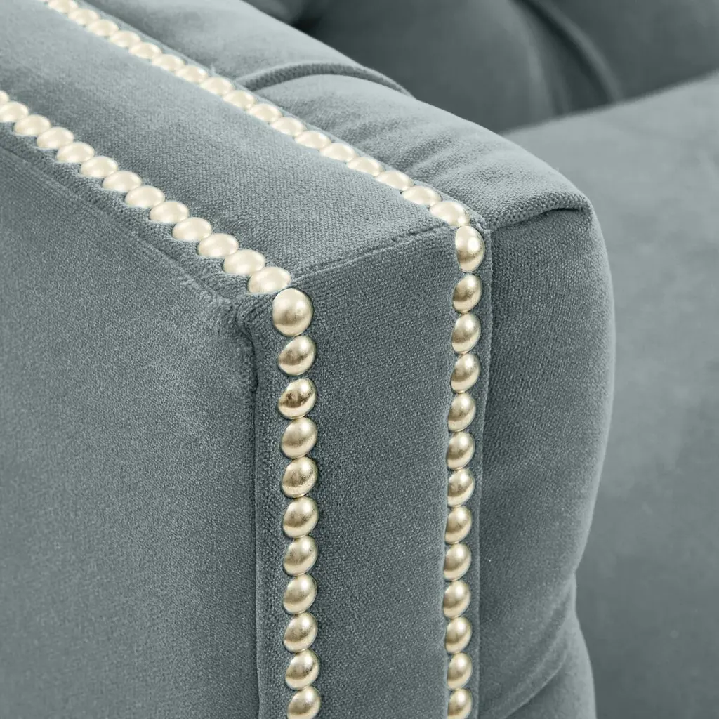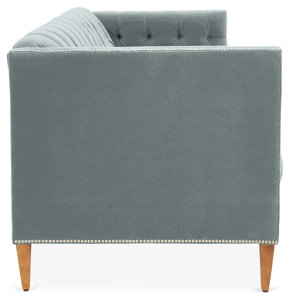 Designed by us and available only at One Kings Lane: With deep tufting, a tuxedo silhouette, and structured nailhead trim, this sofa embodies a timeless elegance. A generous fill of down and feathers ensures long-lasting comfort and support.