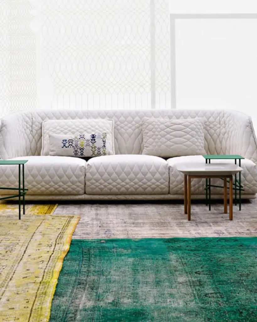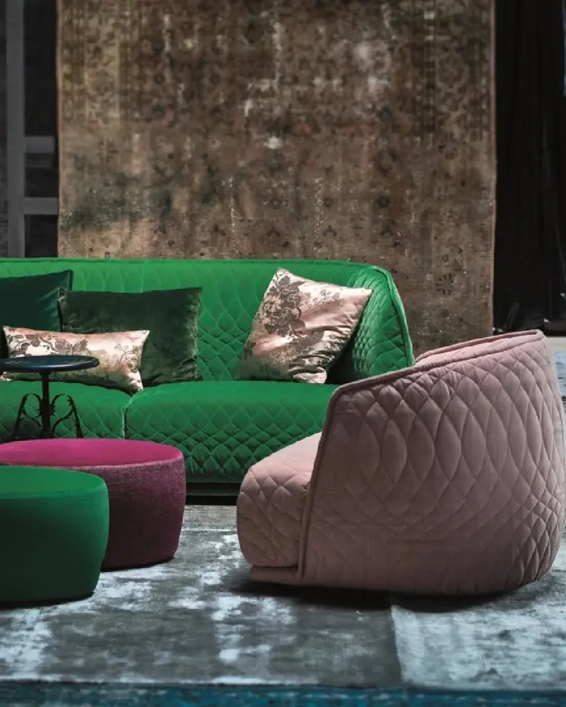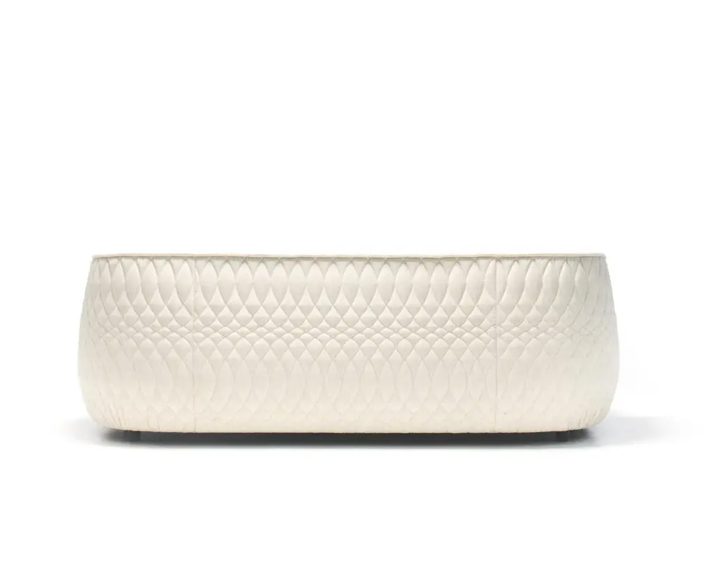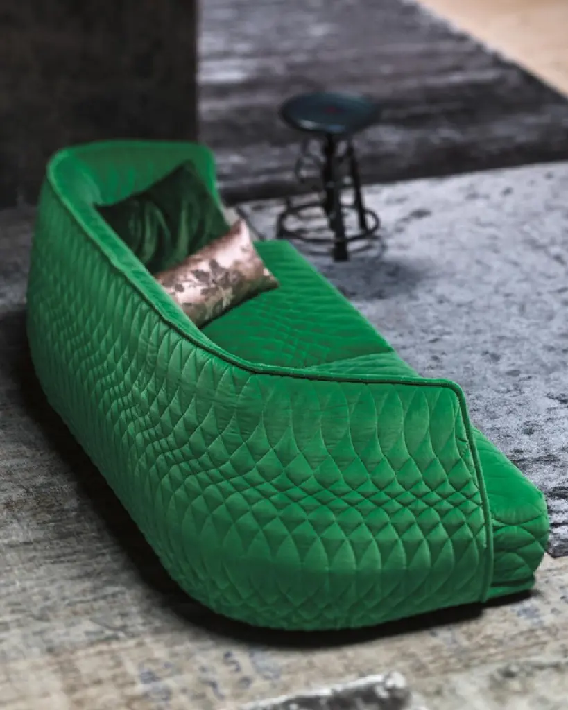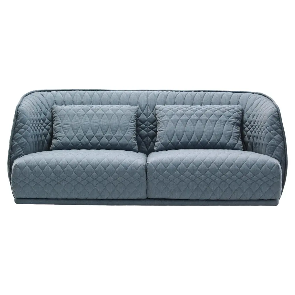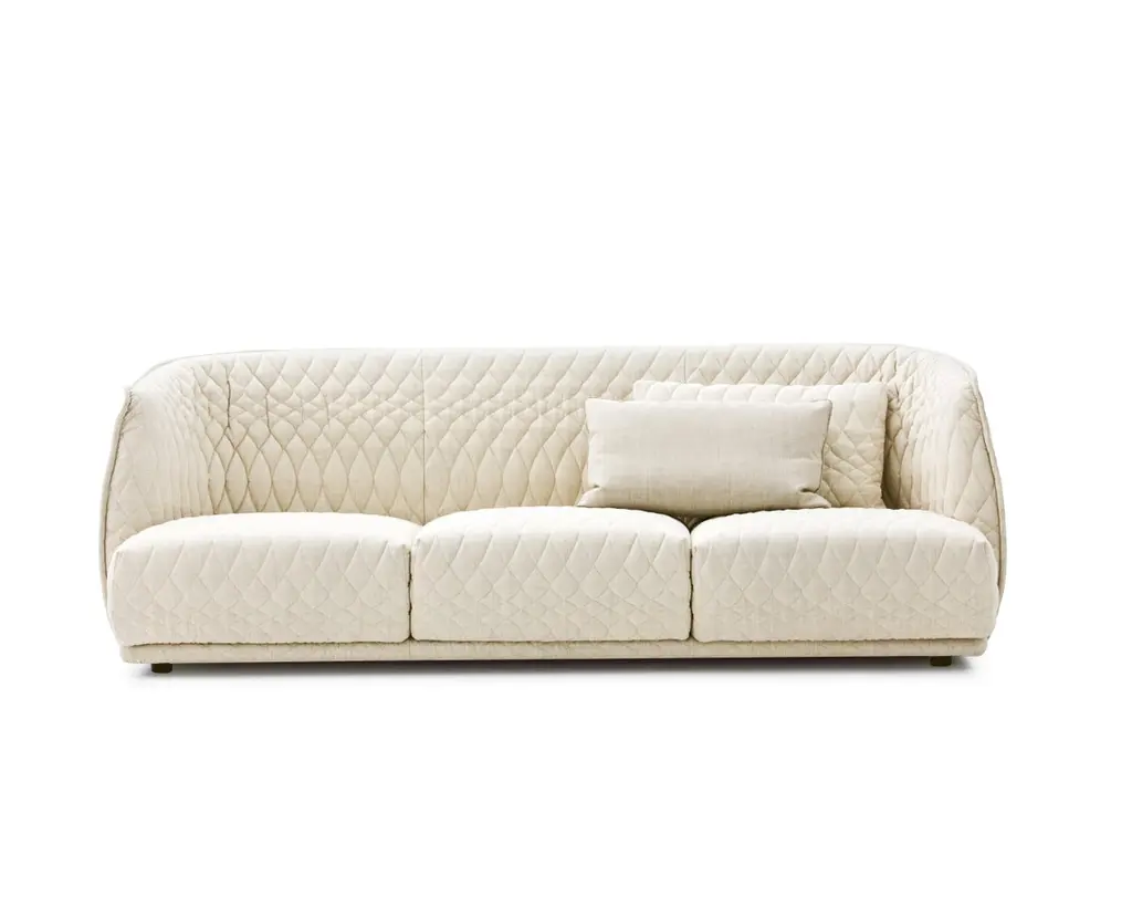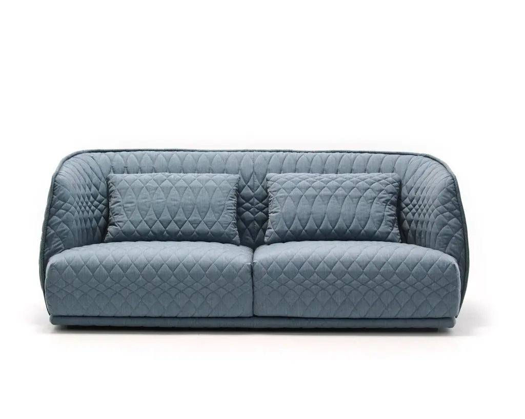 A collection with a distinctive two–part shape, the padded shell embraces the huge seat cushions. Its curves are shown off by the total absence of sharp corners and the softness of the fabric, and the quilted decoration where the thread, like the lines of a pencil, draws an elegant three-dimensional form to call to the senses. In its design, Redondo is inspired by 1950s and 60s American cars- their upholstered interiors, the soft curves of their bodywork, and on-the-road comfort for long coast-to-coast drives. To the observer, it is the stage for scenes for everyday life.Injected flame-retardant polyurethane foam and polyester fiber over internal frame in steel. Feet in plypropylene. The fabric used for upholstering the collection is quilted on particular design of the designer Patricia Urquiola. The covers of the Redondo collection are removable.poufs available, please inquire with us.DIMENSIONS:Two seats: W. 215 x D. 104 x H 84 cmThree seats: W. 245 x D. 104 x H 84 cmAvailable in different options, price upon request.