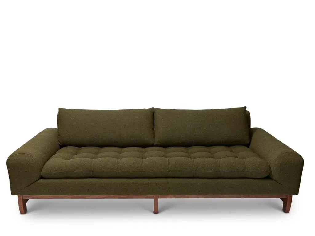 The Morro sofa is our deepest and largest scaled sofa featuring a biscuit tufted seat, loose back cushions and a geometrically sculpted base. Available in American walnut or white oak.The Lawson-Fenning Collection is designed and handmade in Los Angeles, California. Reach out to discover what options are currently in stock.