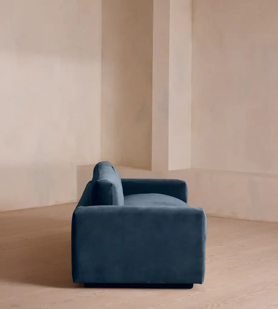 With a low height and deep seat, our Mossley three-seater sofa offers a more laidback aesthetic to your living room, while recreating the mood of Soho House Room with its 1970s-inspired design. Upholstered in rich velvet, it features feather-wrapped foam cushions for further comfort when kicking back and relaxing or socialising with friends.