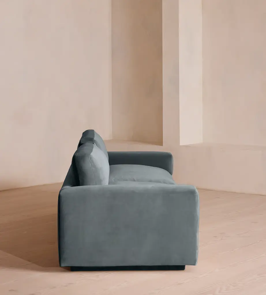 With a low height and deep seat, our Mossley four-seater sofa offers a more laidback aesthetic to your living room, while recreating the mood of Soho House Room with its 1970s-inspired design. Upholstered in rich velvet, it features feather-wrapped foam cushions for further comfort when kicking back and relaxing or socialising with friends.