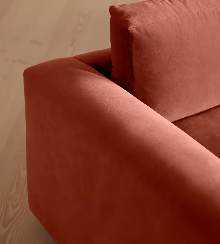 With a low height and deep seat, our Mossley three-seater sofa offers a more laidback aesthetic to your living room, while recreating the mood of Soho House Room with its 1970s-inspired design. Upholstered in rich velvet, it features feather-wrapped foam cushions for further comfort when kicking back and relaxing or socialising with friends.