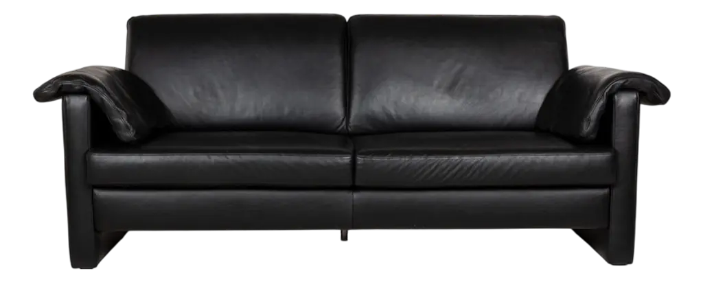 The MR 2875 sofa from Musterring is covered in black leather and stands on floor-to-ceiling side panels. It is characterized by its classic design - wide armrests, high backrests and generous padding also ensure a high level of comfort. The three-seater can be easily combined with other furnishing elements. I have official proof of authenticity such as vintage catalogs, designer records, or other literature sources and take full responsibility for any authenticity issues arising from misattribution