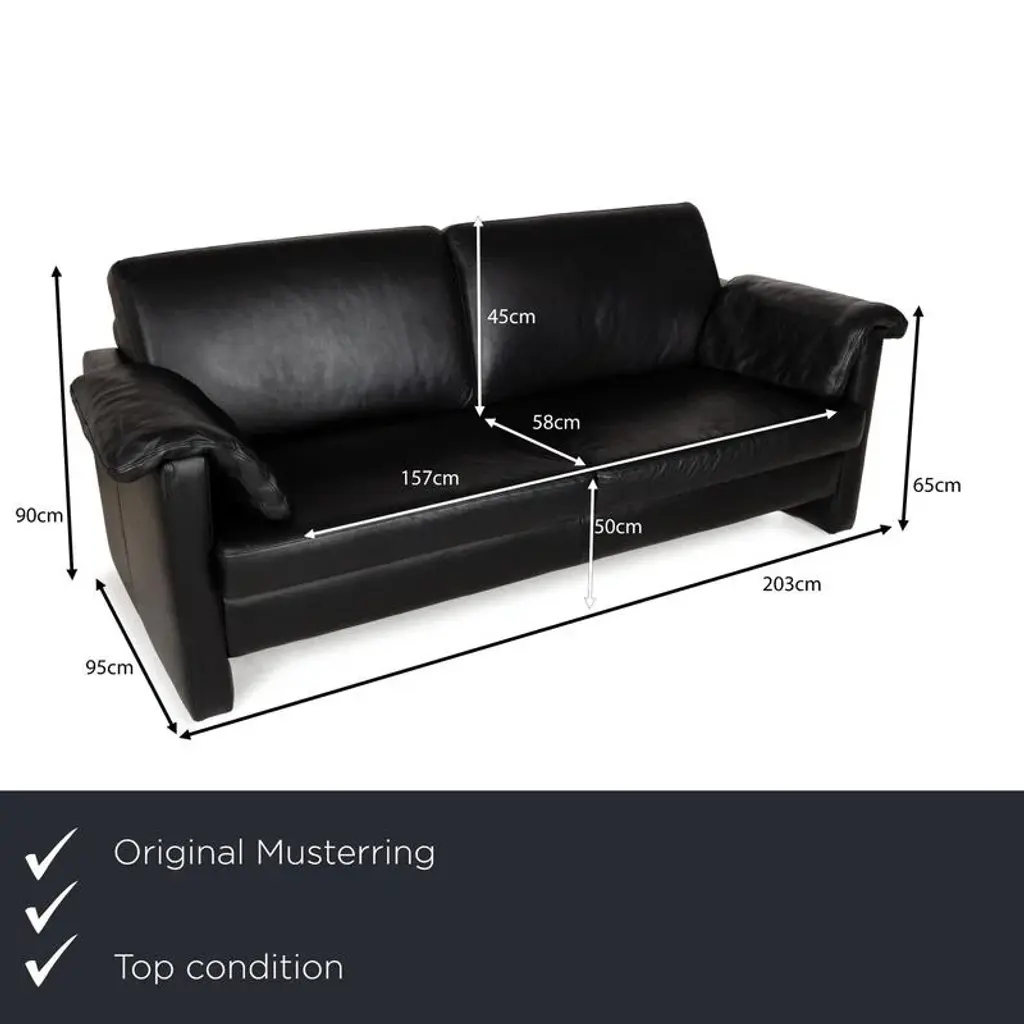 Mr 2875 Leather Three-Seater Black Sofa From Musterring