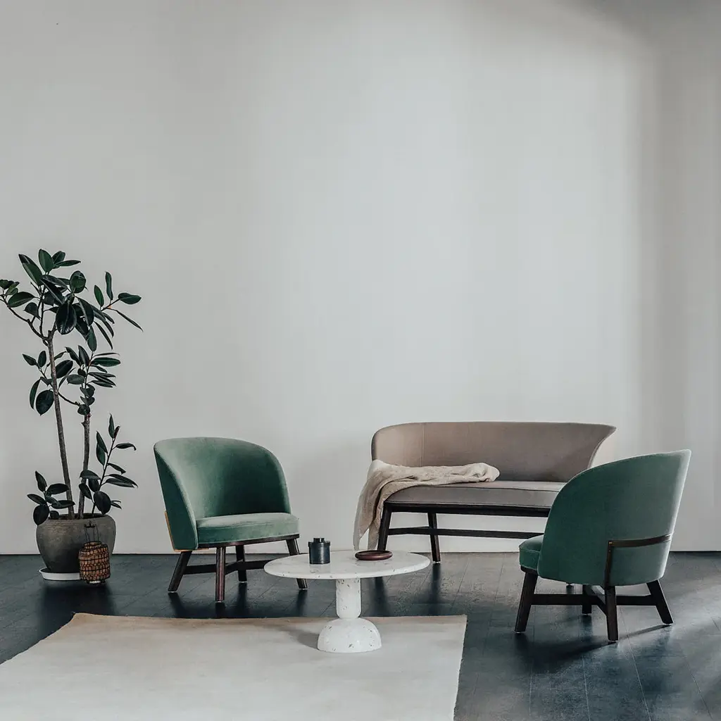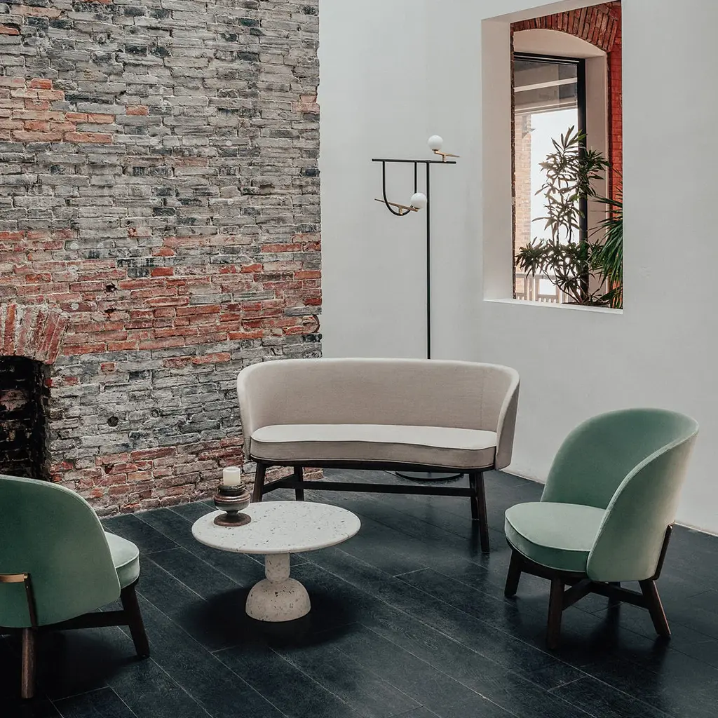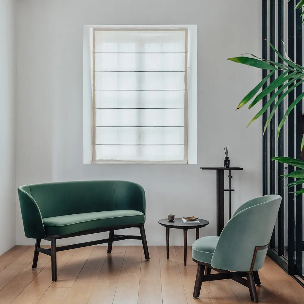Inspired by Shanghai's iconic Bund, where the old seamlessly merges with the new and where rich history coexists with modern life, the Mr. B collection reflects a harmonious blend of Eastern and Western cultures. The modern aesthetic is evident, yet the influence of traditional old culture is intricately woven into the details. The collection showcases a fusion between the robust wood structure derived from traditional carpentry heritage and the metal details that speak to an industrial influence. The well-tailored upholstery provides clean lines as well as a comfortable seating experience. The Mr. B collection is comprised of a dining chair , lounge chair , swivel bar chair , and a two-seater, each bringing an understated touch of sophistication. Suitable for both residential and hospitality spaces, these pieces embody the subtle elegance that captures the essence of Shanghai's spirit.