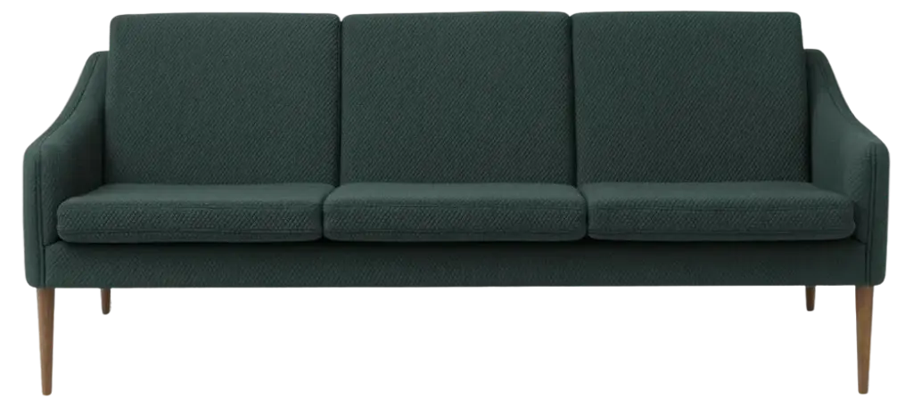 Furnish your home with the Mr. O 3 Seater Sofa from Warm Nordic. This sofa was originally designed by Hans Olsen in 1950. Your sofa features sophisticated, sloping arms and features 3 seats segmented by clean lines. Your sofa is foundationally supported by tapered legs of oiled solid teak. The Mr. O 3 Seater Sofa features Kvadrat fabric for your comfort and is made available in a variety of intricate textile blends.