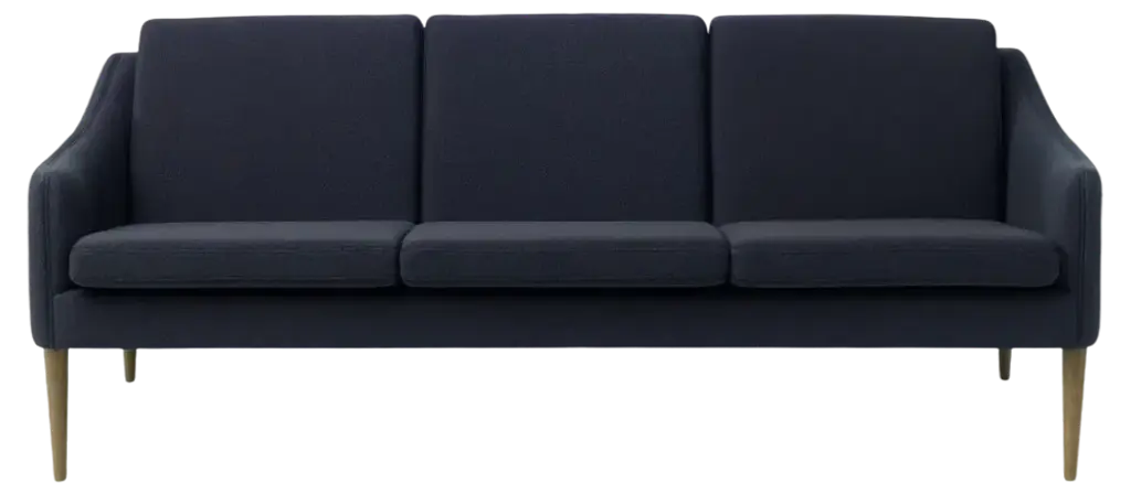 Furnish your home with the Mr. O 3 Seater Sofa from Warm Nordic. This sofa was originally designed by Hans Olsen in 1950. Your sofa features sophisticated, sloping arms and features 3 seats segmented by clean lines. Your sofa is foundationally supported by tapered legs of oiled solid teak. The Mr. O 3 Seater Sofa features Kvadrat fabric for your comfort and is made available in a variety of intricate textile blends.