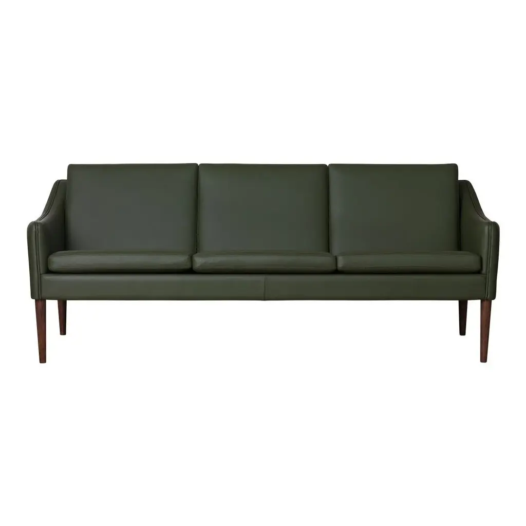 A classic, sophisticated designer sofa designed in the 1950s by the highly acclaimed Danish architect, Hans Olsen. The Mr. Olsen sofa is an original design that is a perfect match for a gentleman's room or a feminine sofa group, in a home office or a holiday cottage: anywhere that classic furniture design makes all the difference. Mr. Olsen is both slender and organic with a lightness that is unusual by comparison with other design classics of the period. Mr. Olsen's special elegance derives particularly from the soft shapes of the sofa's armrests and the round, tapered legs. The sofa is available both in a classic leather version and a fully upholstered version in beautiful fabrics, including sophisticated velour for a more daring look. Choose from several different exclusive furnishing fabrics from the likes of Kvadrat in a variety of classic colours from the Warm Nordic universe. The frame is available in the highest quality oiled or smoked oak.