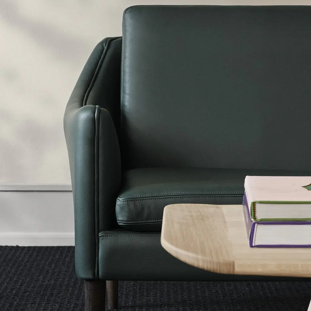 A classic, sophisticated designer sofa designed in the 1950s by the highly acclaimed Danish architect, Hans Olsen. The Mr. Olsen sofa is an original design that is a perfect match for a gentleman's room or a feminine sofa group, in a home office or a holiday cottage: anywhere that classic furniture design makes all the difference. Mr. Olsen is both slender and organic with a lightness that is unusual by comparison with other design classics of the period. Mr. Olsen's special elegance derives particularly from the soft shapes of the sofa's armrests and the round, tapered legs. The sofa is available both in a classic leather version and a fully upholstered version in beautiful fabrics, including sophisticated velour for a more daring look. Choose from several different exclusive furnishing fabrics from the likes of Kvadrat in a variety of classic colours from the Warm Nordic universe. The frame is available in the highest quality oiled or smoked oak.