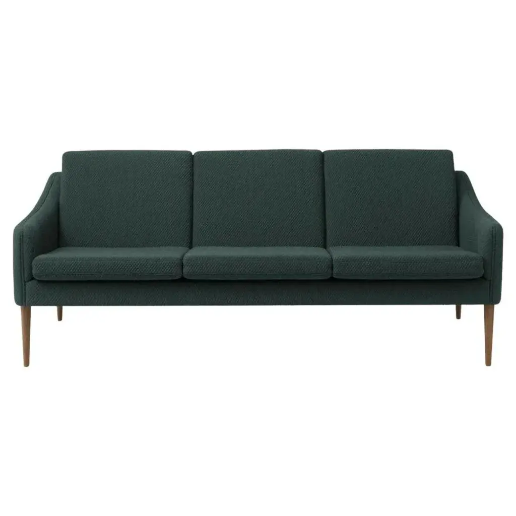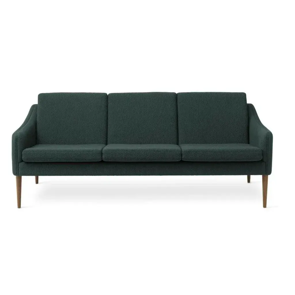 Mr olsen 3 seater oak mosaic petrol shade by warm nordic dimensions: d201 x w79 x h 78/46 cm material: textile upholstery, foam, spring system, solid oiled oak legs, solid smoked oak legs weight: 50 kg may be available separately in different colours and finishes. A classic, sophisticated designer sofa designed in the 1950s by the highly acclaimed danish architect, hans olsen. The sofa is now available in an exclusive anniversary edition with sustainable textiles launched on the occasion of hans olsen's 100th anniversary. The mr olsen sofa is an original design that is a perfect match for a gentleman's room or a feminine sofa group, in a home office or a holiday cottage: anywhere that classic furniture design makes all the difference. Mr olsen is both slender and organic with a lightness that is unusual by comparison with other design classics of the period. Mr olsen's special elegance derives particularly from the soft shapes of the sofa's armrests and the round, tapered legs. The sofa is available both in a classic leather version and a fully upholstered version in beautiful fabrics, including sophisticated velour for a more daring look. Choose from several different exclusive furnishing fabrics from the likes of kvadrat in a variety of classic colours from the warm nordic universe. The frame is available in the highest quality walnut, oiled oak, or smoked oak. The anniversary edition of the mr olsen sofa is two-toned with a lively, yet elegant expression covered in two different sustainable fabrics from kvadrat. The sofa comes in a light purple version in re-wool from kvadrat and a peach version in merit by maharam, both of which excel in sustainability, sensuosity and quality. The frame on the anniversary sofa is constructed of fsc-certified wood. Warm nordic is an ambitious design brand anchored in nordic design history and with a timeless, aesthetic style that inspires you to appreciate the little things in life. The company is the result of several years’ intense work on developing a new design brand with design history, quality and personality at its core. Warm nordic boasts a colourful and charming universe of furniture, lamps and accessories full of personality. Our designs encapsulate the nordic spirit, which in its essence is timeless, inclusive and warm.