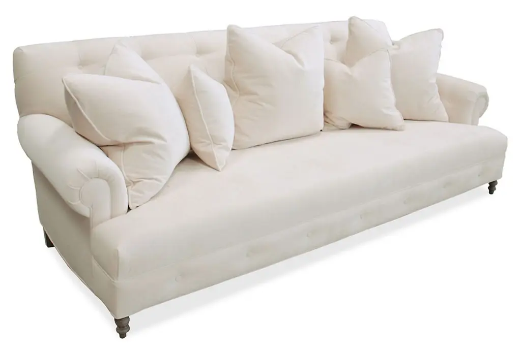 Classically elegant, yet boasting modern touches, this cream sofa's crisp cream upholstery and plush feel will never go out of style. Handcrafted in the USA.