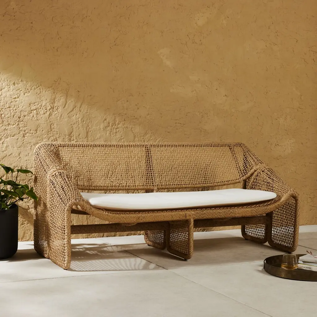 Mycah Woven All-weather Wicker Outdoor Sofa, Natural