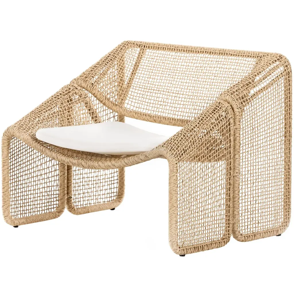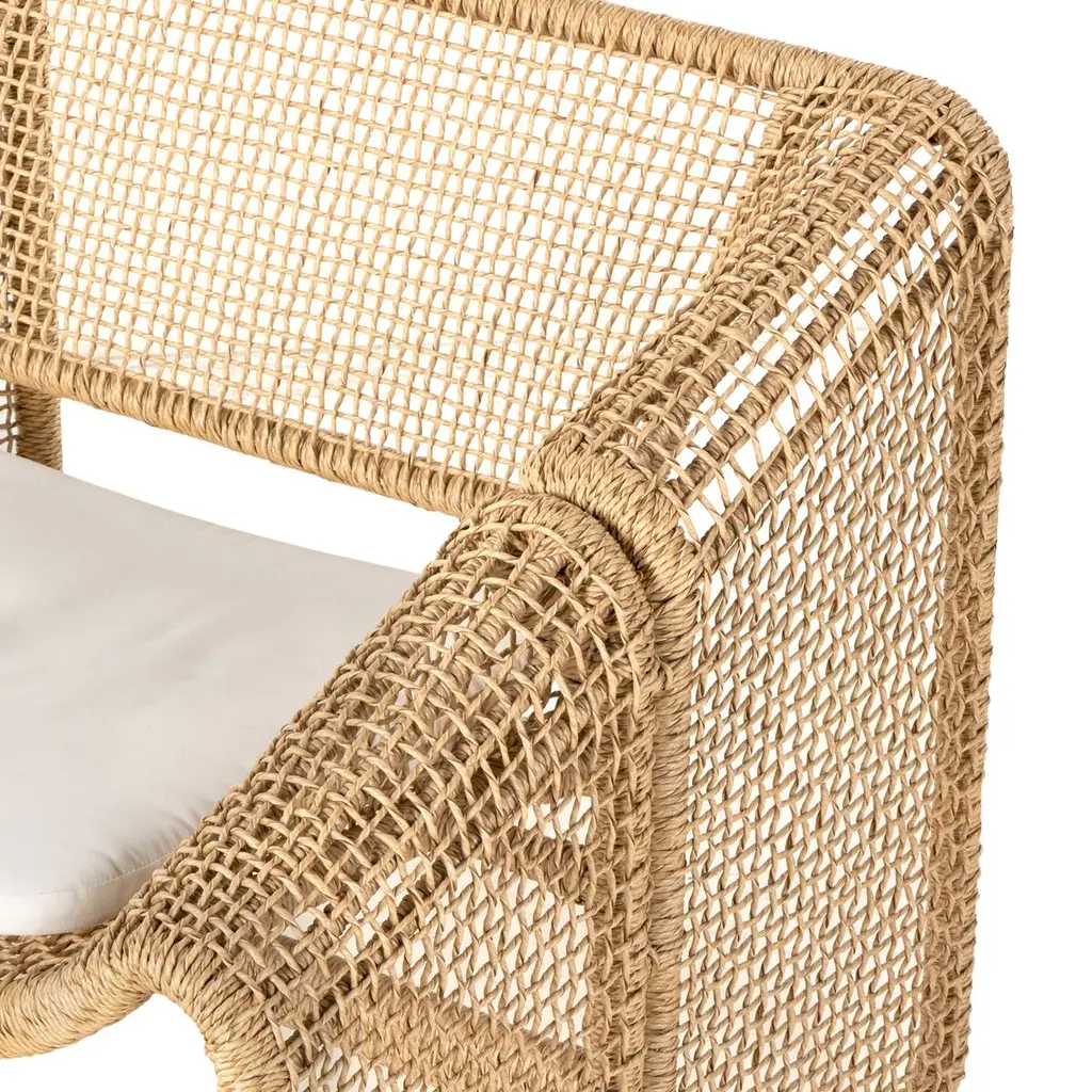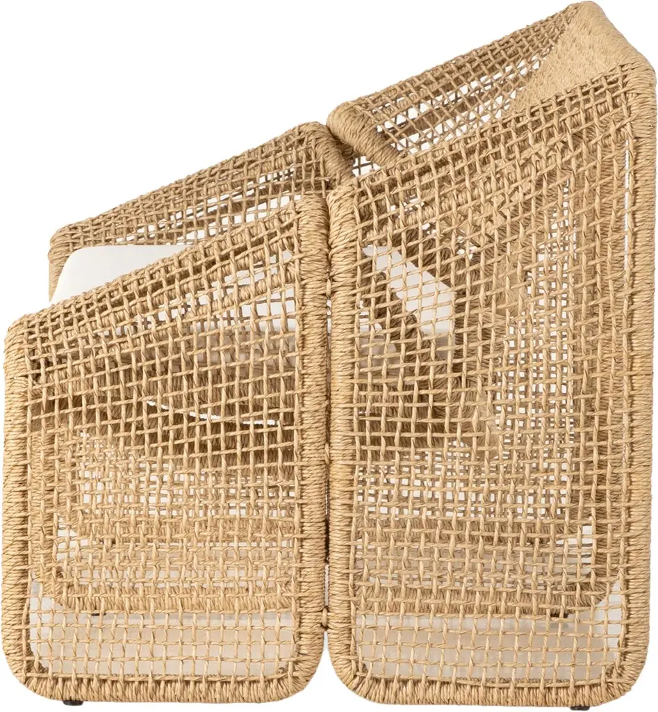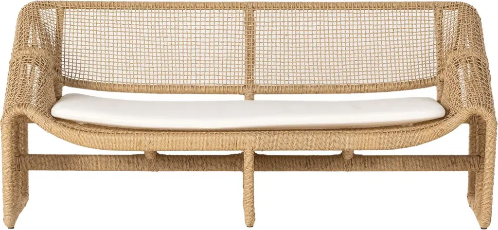 Great texture for the great outdoors in a sofa silhouette. Woven all-weather wicker forms a light, hyacinth-like frame for a durable seat cushion, spurring a grand, shapely look and feel. Cover or store indoors during inclement weather and when not in use