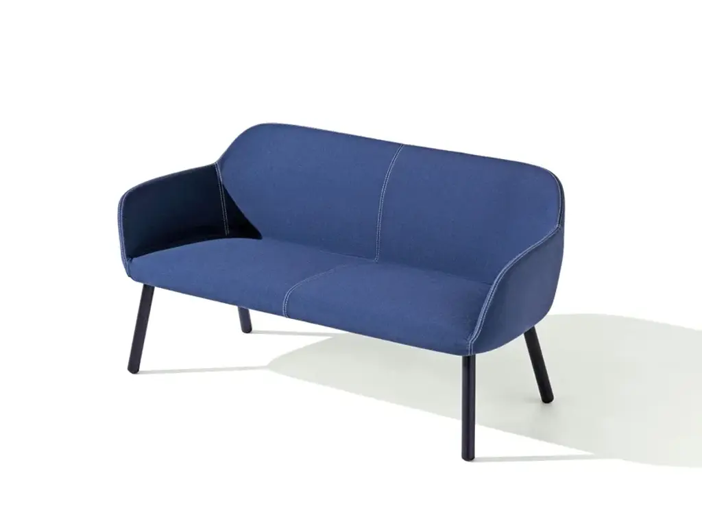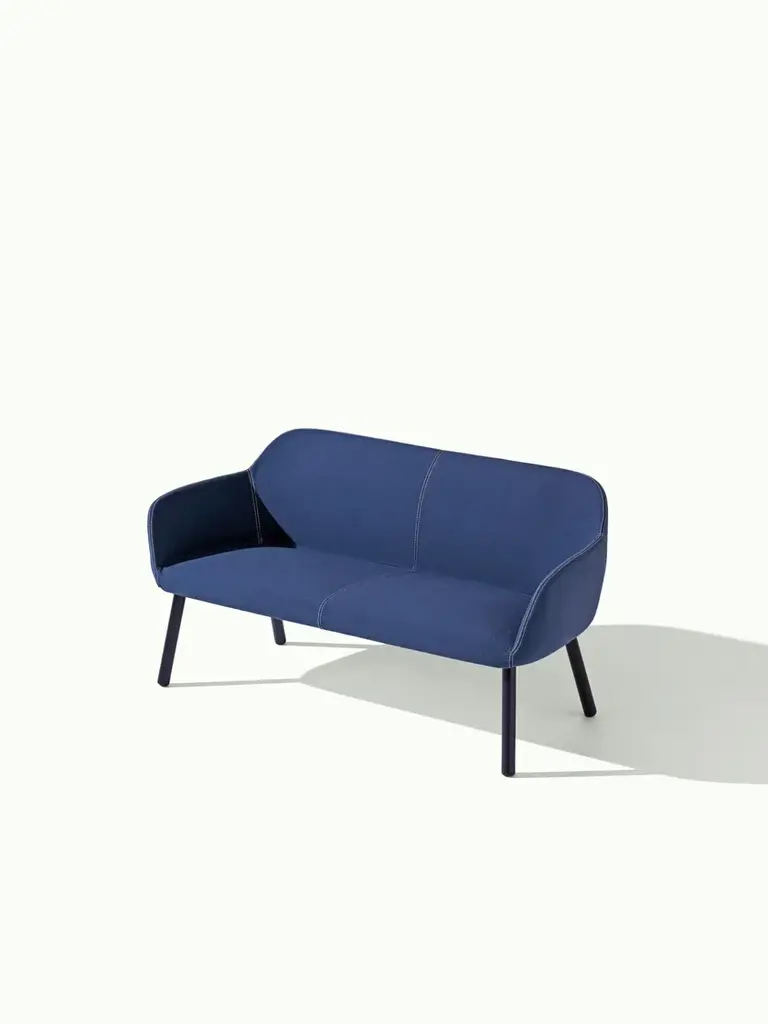 Sofa with upholstered seat and back, 4 beech wood legs.Et al. presents the new collection of upholstered seats: Myra, designed by Emilio Nanni.Following the company’s spirit, this family of upholstered seats testifies that idea of comfort that the products Et al. ensure. A seat with an especially contemporary volumes layout, in accordance with the international taste that is attentive to design mood, Myra lends itself to instil its reassuring elegance to any environment. ‘The Curve is the subliminal shape that recalling a desire to wrap up as well as the comfort implied by the ancestral idea of trust, protection, and rest represents’ Emilio NanniThe curve is its distinctive feature, along with the extreme attention to detail. The contrasting stitching and the many possible combinations of colours and materials give the product a strong versatility. Myra, with its infinite option and its discreet yet equally strong style, satisfies every specific request of inclusion and attention to comfort, making it a good candidate to become a real long seller. The collection includes all types: side chair, armchair, high and low stool, lounge chair, and it is available in two different frame options: beech wood or steel.