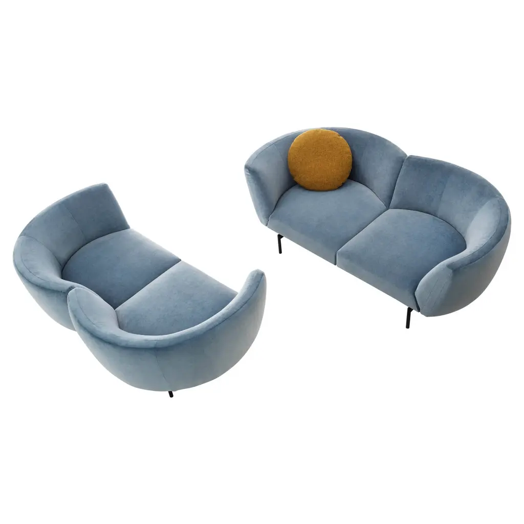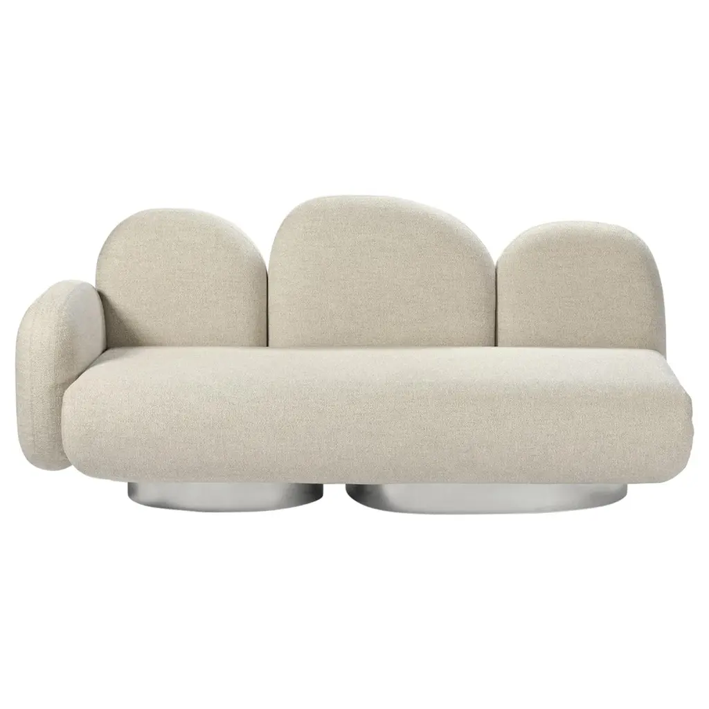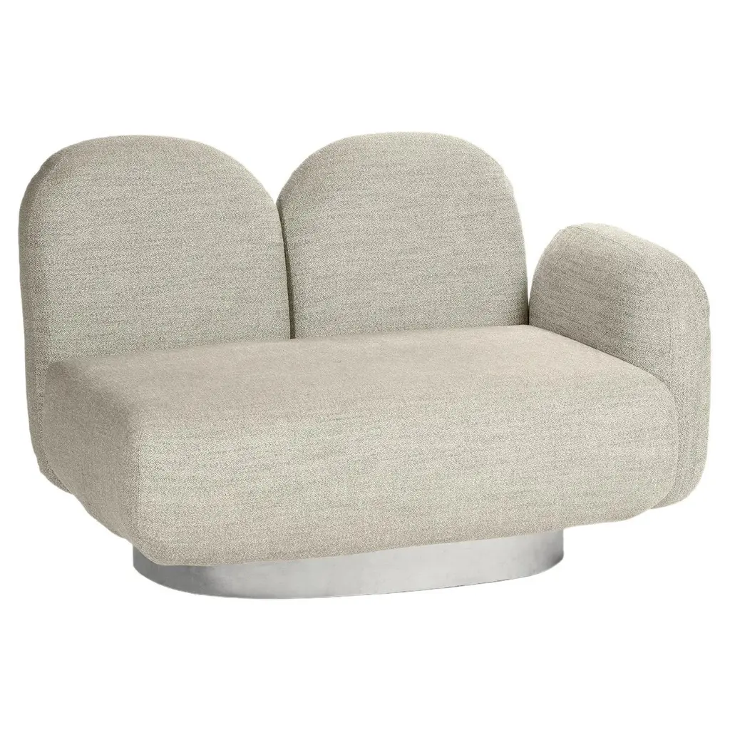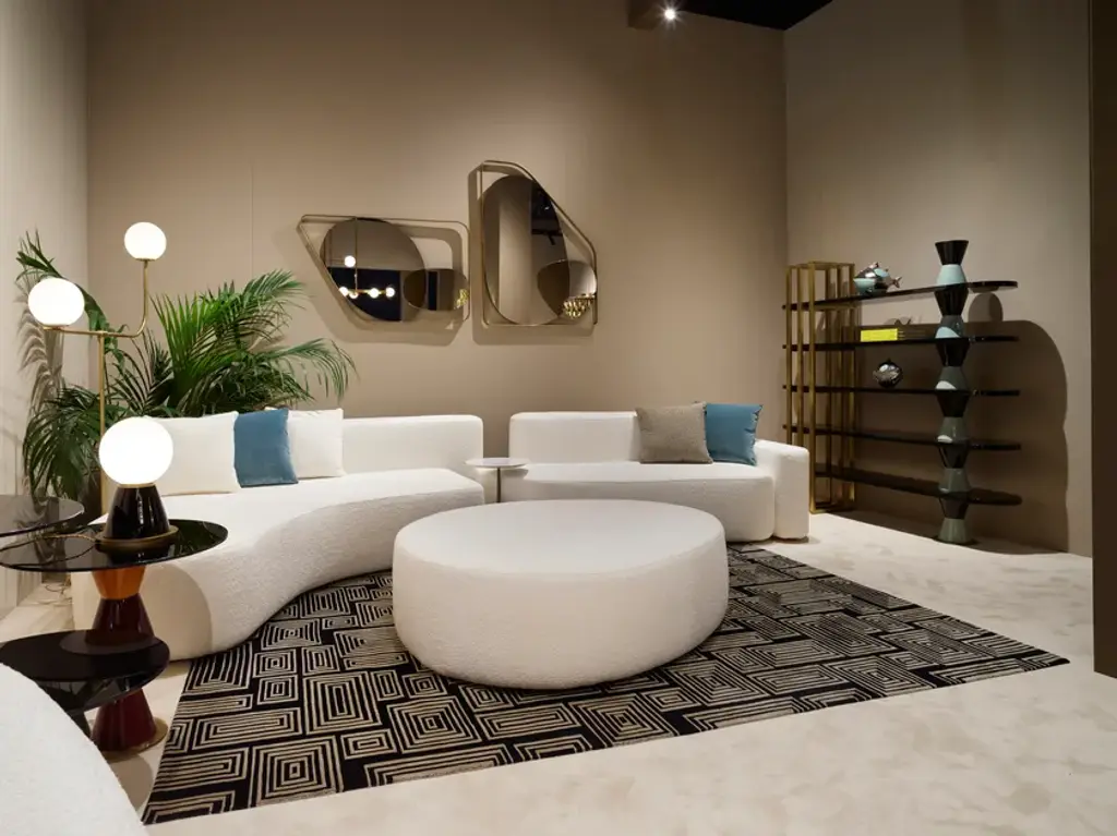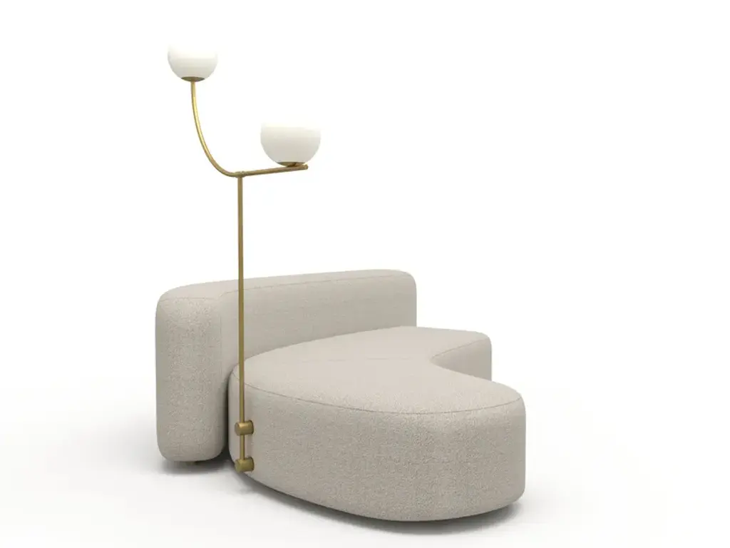 Pure shape and lines, an independent sofa with the possibility of being composed and decomposed according to the functional and aesthetic needs related to the new trends of living. The welcoming and wide seat can be freely equipped with accessory elements such as side tables in brushed brass with back-painted glass top or reading floor lamps through a simple plug-in system.The structure of the sofa is in wood with padding in polyurethane foam in different densities.The various compositions with the upholstered furniture of the same line, allow inventing multiple solutions with very scenographic results, which can be placed next to the wall or in the center of the living room.