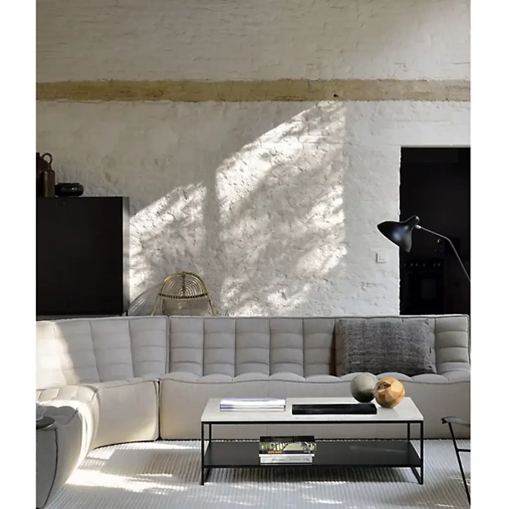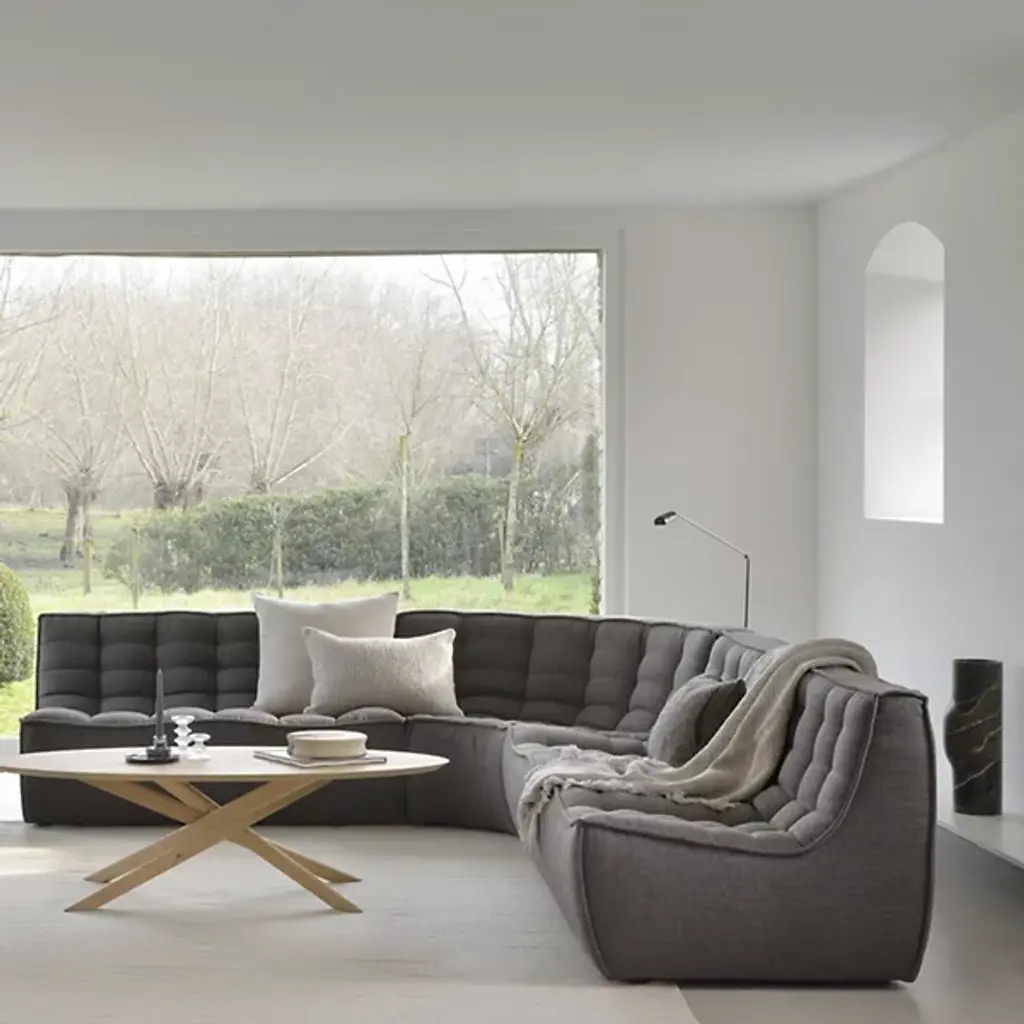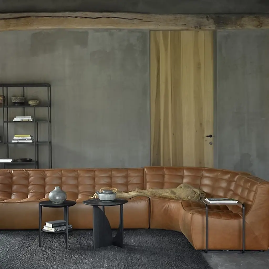 The N701 Round Corner Sofa by Ethnicraft is a cozy, inviting piece from designer Jacques Deneef. With a softly rounded silhouette that is set on the ground, this corner sofa is a cool, comfortable piece with a modular design that pairs easily with other N701 pieces to create a custom addition to spaces. Also perfect as a solo addition to rooms, the tufted surface of this piece creates the perfect spot to sit back and find a relaxing moment in.