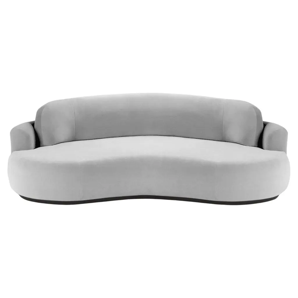 The naked curved sofa with inviting curves and a comfortable seating. Handmade with a solid wood base. The Naked Round sofa is available in a number of different materials, finishes and combinations.MaterialTop : velvet fabric, boucle fabricBase : solid wood, choose from solid wood colorsBeech ash-056-5AluminiumDimensionsAvailable in 3 sizes:Small : W 95” x D 52” x H 31” - Seat height 15”Medium : W 110” x D 52” x H 31” - Seat height 15”Large : W 118” x D 52” x H 31” - Seat height 15”Pictured inVigo blossom, natural beech.