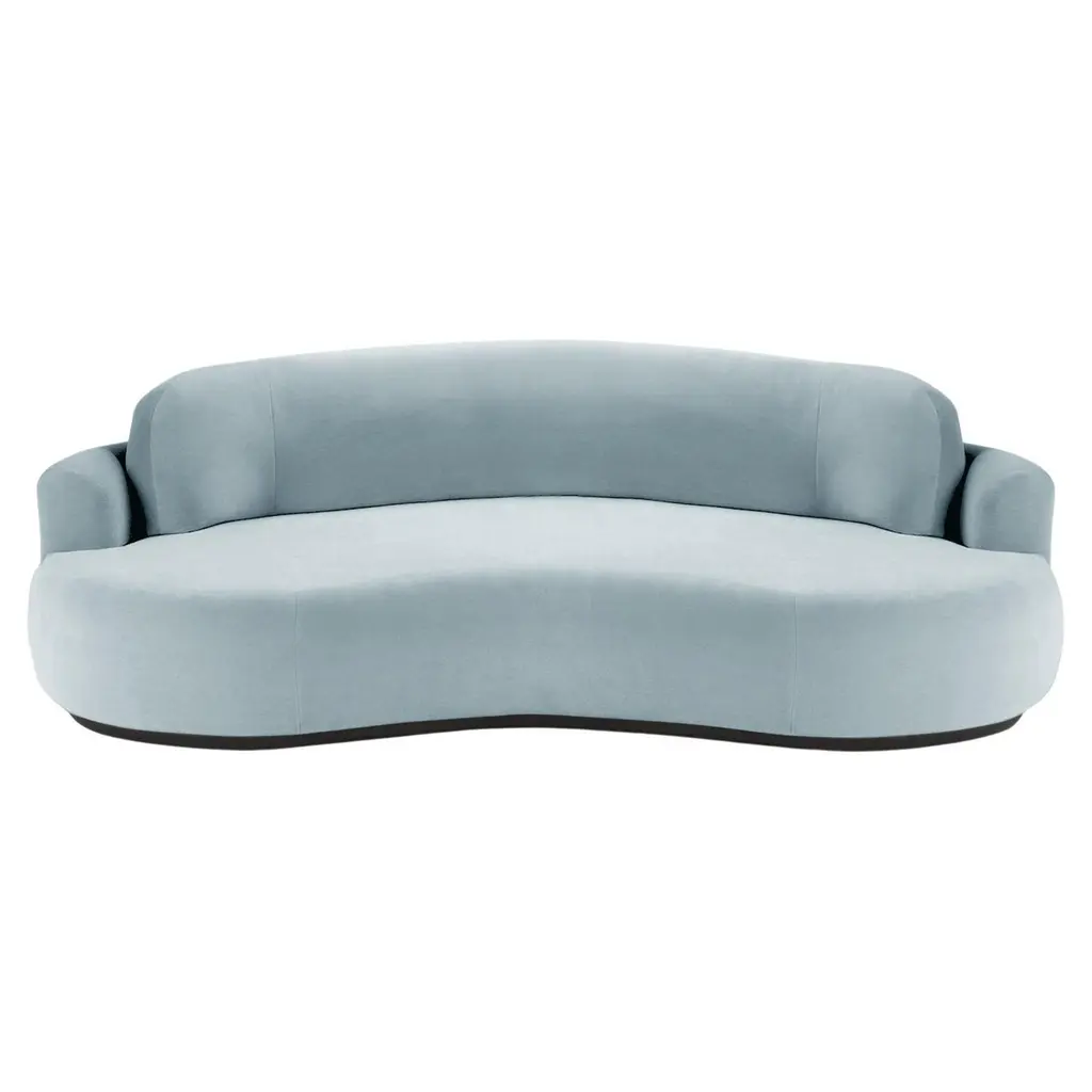 The Naked Curved Sofa with Inviting curves and a comfortable seating. Handmade with a solid wood base. The Naked Round sofa is available in a number of different materials, finishes and combinations.MaterialTop : velvet fabric, boucle fabricBase : solid wood, choose from solid wood colorsBeech Ash-056-5Paris SafiraDimensionsAvailable in 3 sizes:Small : W 95” x D 52” x H 31” - Seat height 15”Medium : W 110” x D 52” x H 31” - Seat height 15”Large : W 118” x D 52” x H 31” - Seat height 15”Pictured inSmooth 60, Natural Beech.