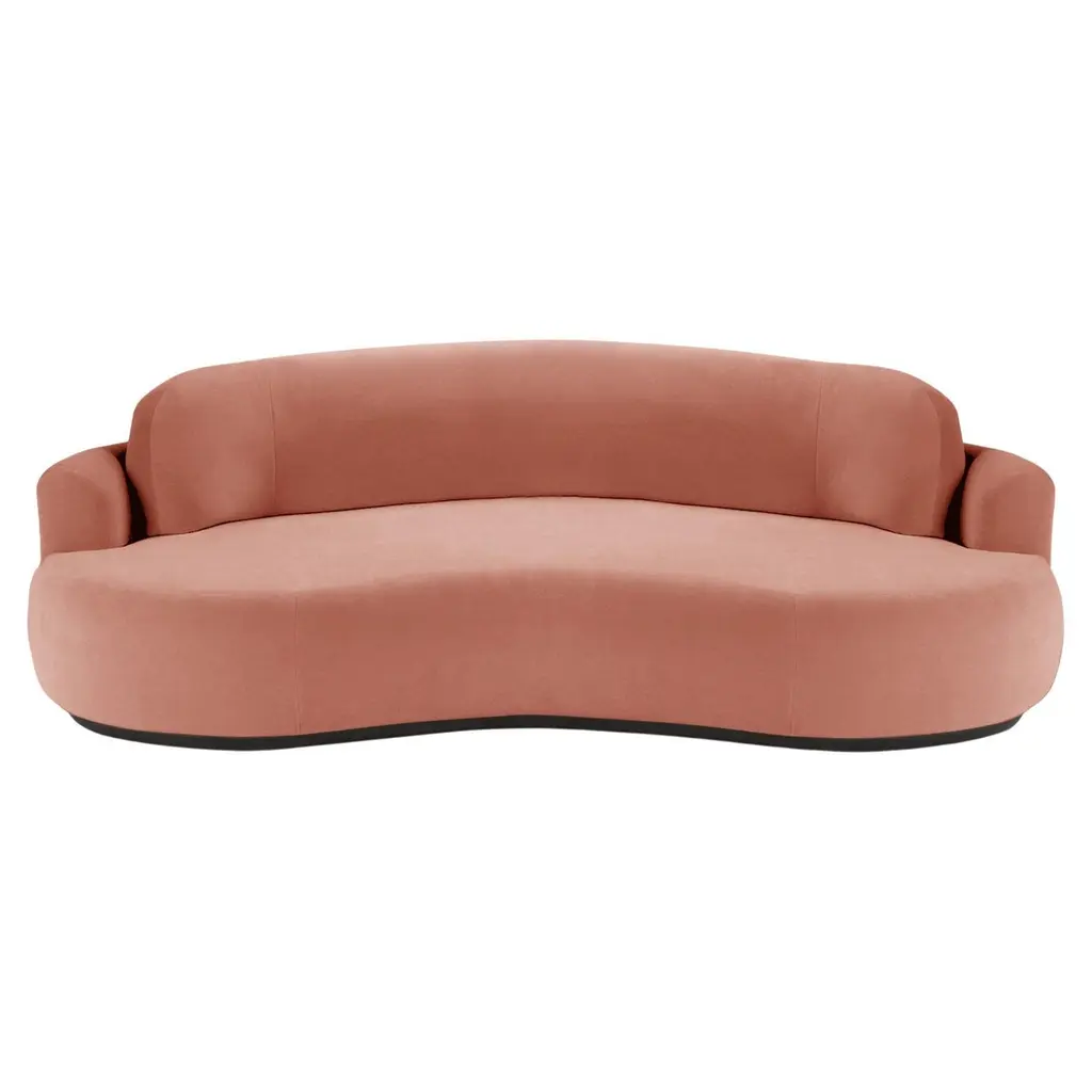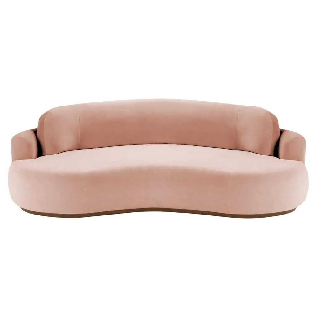 The Naked Curved Sofa with Inviting curves and a comfortable seating. Handmade with a solid wood base. The Naked Round sofa is available in a number of different materials, finishes and combinations.MaterialTop : velvet fabric, boucle fabricBase : solid wood, choose from solid wood colorsWood: Beech Ash-056-5Fabric: Vigo BlossomDimensionsAvailable in 3 sizes:Small : W 95” x D 52” x H 31” - Seat height 15”Medium : W 110” x D 52” x H 31” - Seat height 15”Large : W 118” x D 52” x H 31” - Seat height 15”Pictured inVigo blossom, Natural Beech.