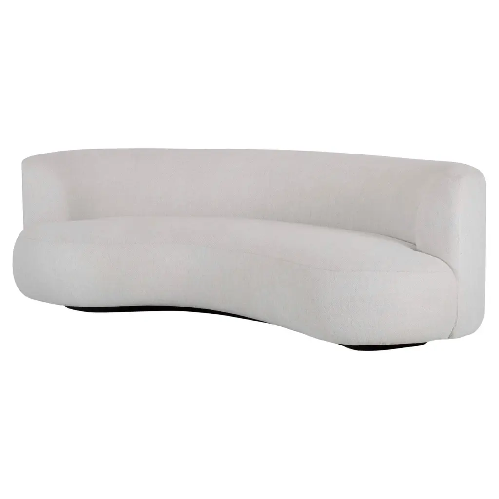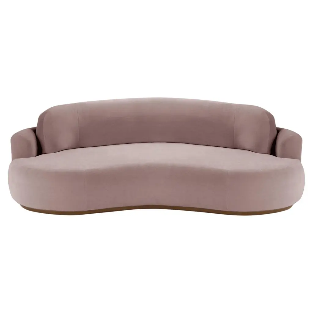 The Naked Round Sofa with Inviting curves and a comfortable seating. Handmade with a solid wood base. The Naked Round sofa is available in a number of different materials, finishes and combinations.MaterialTop : velvet fabric, boucle fabricBase : solid wood, choose from solid wood colorsDimensionsAvailable in 3 sizes:Small : W 95” x D 52” x H 31” - Seat height 15”Medium : W 110” x D 52” x H 31” - Seat height 15”Large : W 118” x D 52” x H 31” - Seat height 15”Pictured inSmooth 19 Teal, Natural Beech.