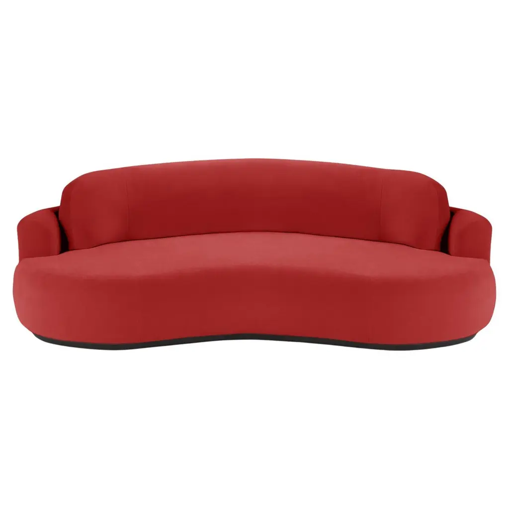 The Naked Round Sofa with Inviting curves and a comfortable seating. Handmade with a solid wood base. The Naked Round sofa is available in a number of different materials, finishes and combinations.MaterialTop : velvet fabric, boucle fabricBase : solid wood, choose from solid wood colorsDimensionsAvailable in 3 sizes:Small : W 95” x D 52” x H 31” - Seat height 15”Medium : W 110” x D 52” x H 31” - Seat height 15”Large : W 118” x D 52” x H 31” - Seat height 15”Pictured inSmooth 19 Teal, Natural Beech.