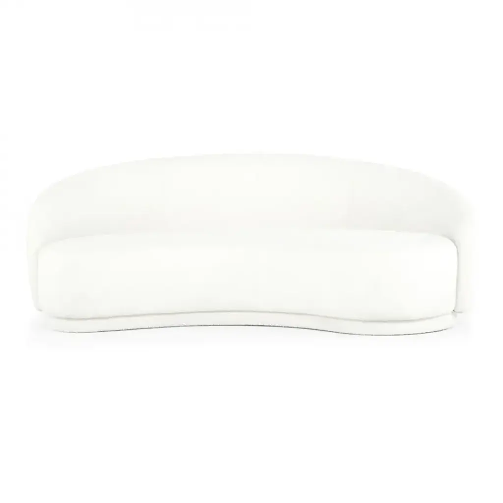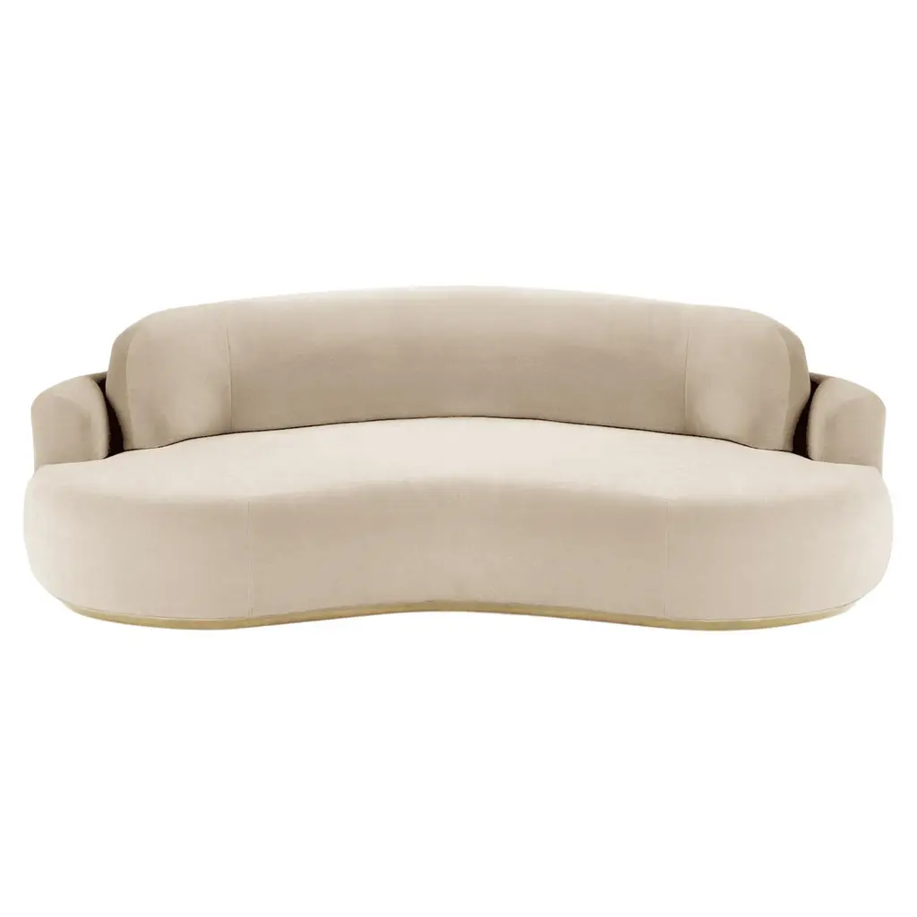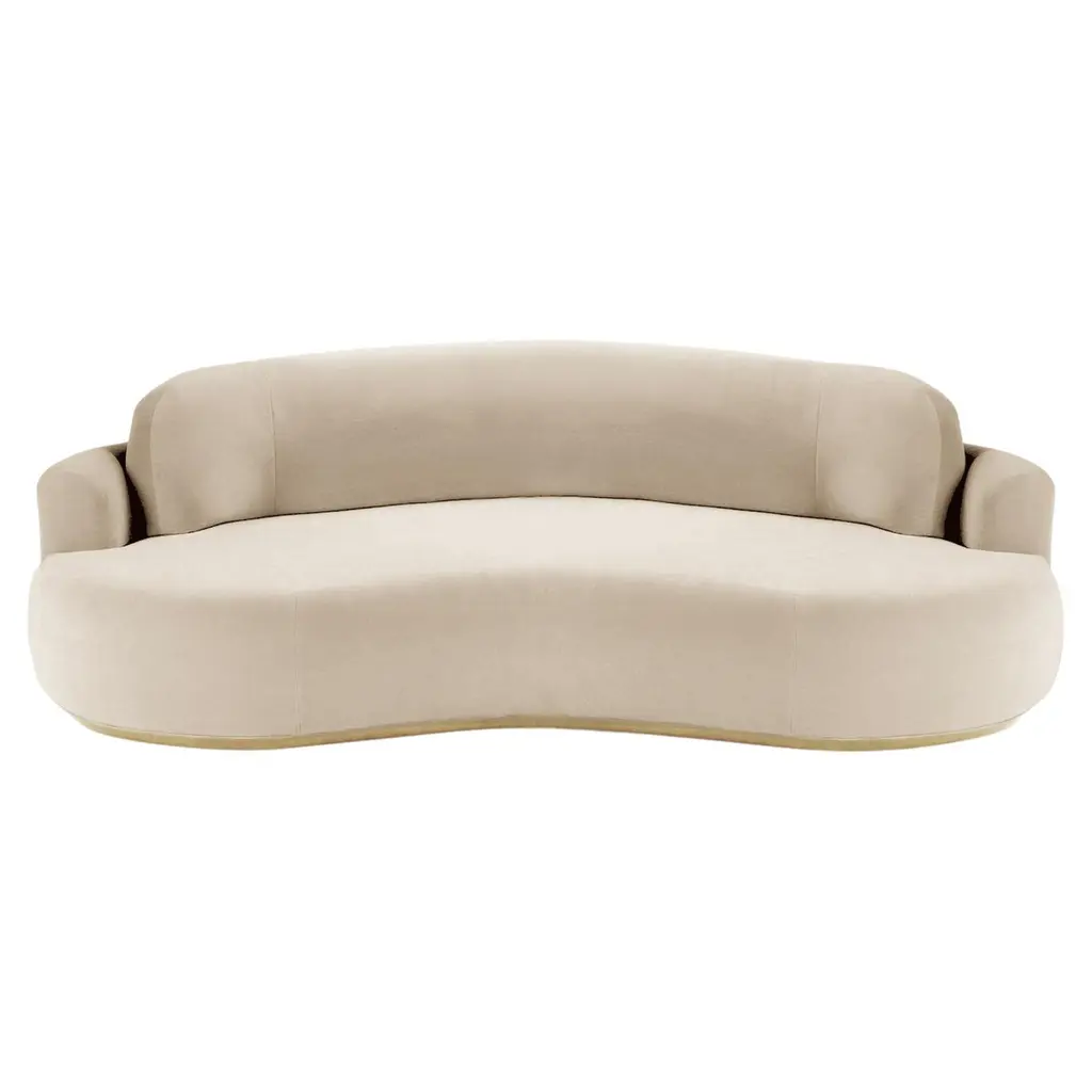 The Naked Round Sofa with Inviting curves and a comfortable seating. Handmade with a solid wood base. The Naked Round sofa is available in a number of different materials, finishes and combinations.MaterialTop : velvet fabric, boucle fabricBase : solid wood, choose from solid wood colorsDimensionsAvailable in 3 sizes:Small : W 95” x D 52” x H 31” - Seat height 15”Medium : W 110” x D 52” x H 31” - Seat height 15”Large : W 118” x D 52” x H 31” - Seat height 15”Pictured inSmooth 19 Teal, Natural Beech.