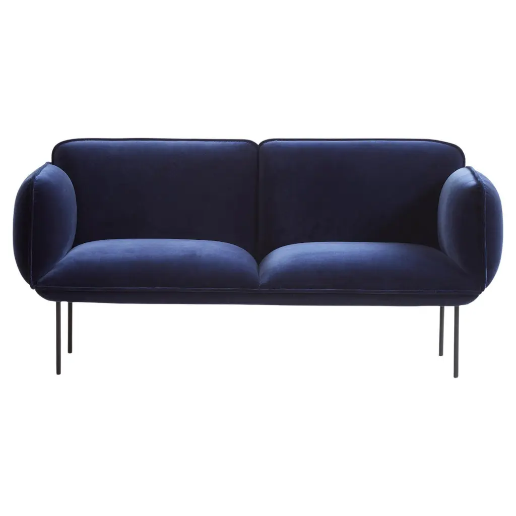 Nakki's voluminously rounded contours bring a shot of good-humored comfort to any setting. Part of a series from the Danish design brand Woud, the 2-seater sofa juxtaposes its pillowy seat with slender metal legs for an intriguing visual contrast. Finnish design star Mika Tolvanen combines meticulously clean lines with ample yet firm padding for exceptional seating contentment.